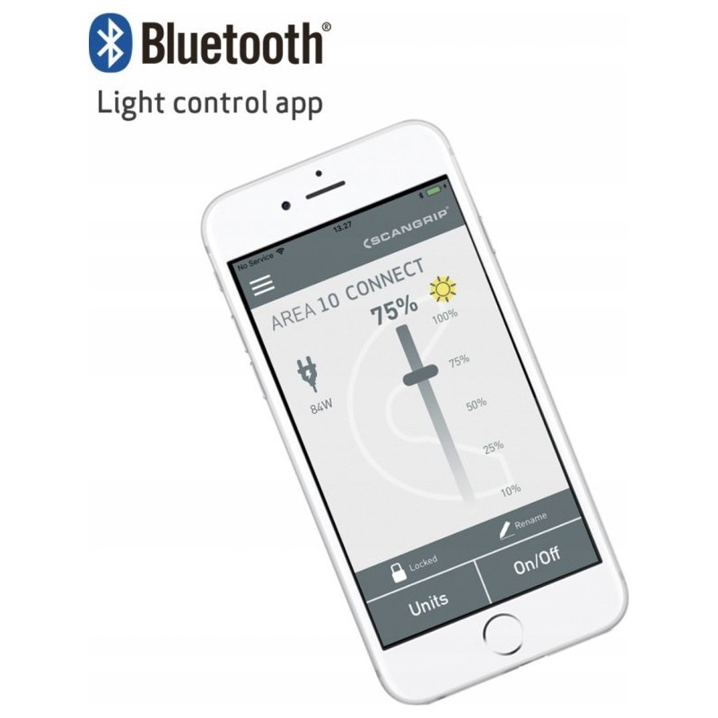 Dzięki zintegrowanemu sterowaniu oświetleniem BLUETOOTH, można włączać/wyłączać oświetlenie robocze i regulować moc światła za pomocą urządzenia mobilnego.