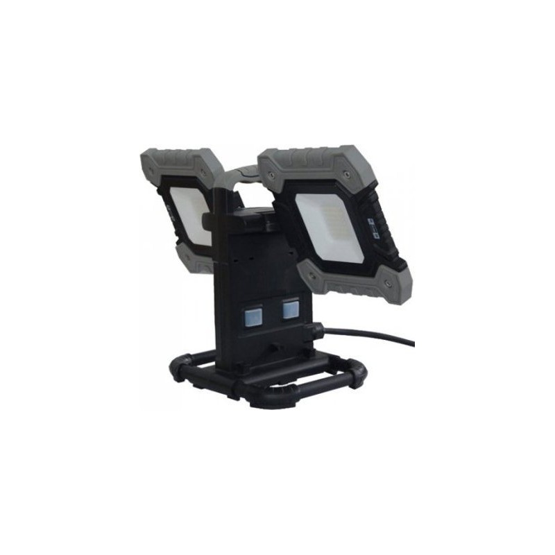 Dane techniczne:Moc: 60 W (2 x 30 W)Efektywność: 6300 LmWymiary: 2 lampy 190 x 165 mmDługość przewodu: 2 mWysokość lampy: 275 mmWaga: 3 kgŻywotność lampy: 50.000 roboczogodzinBarwa światła: 6500 K (zimno biała)Bezpieczeństwo: IP 54**...