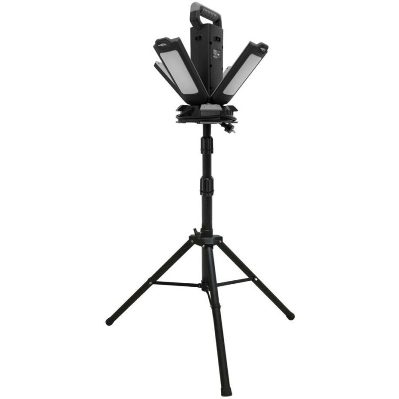 Kompaktowe wymiary po złożeniu sprawiają, że lampa robocza jest łatwa do transportu. Dzięki zintegrowanym, składanym nóżkom i funkcji teleskopowej, statyw jest wygodnie dołączony. Na podstawie dostępny jest również zwijacz kabla.