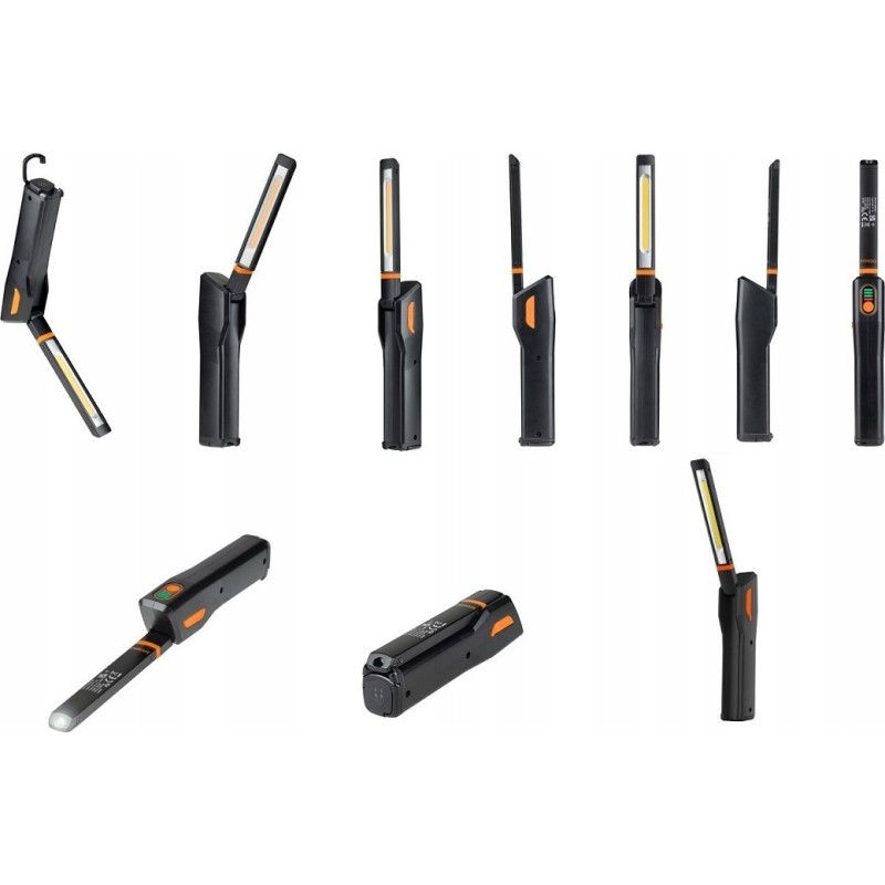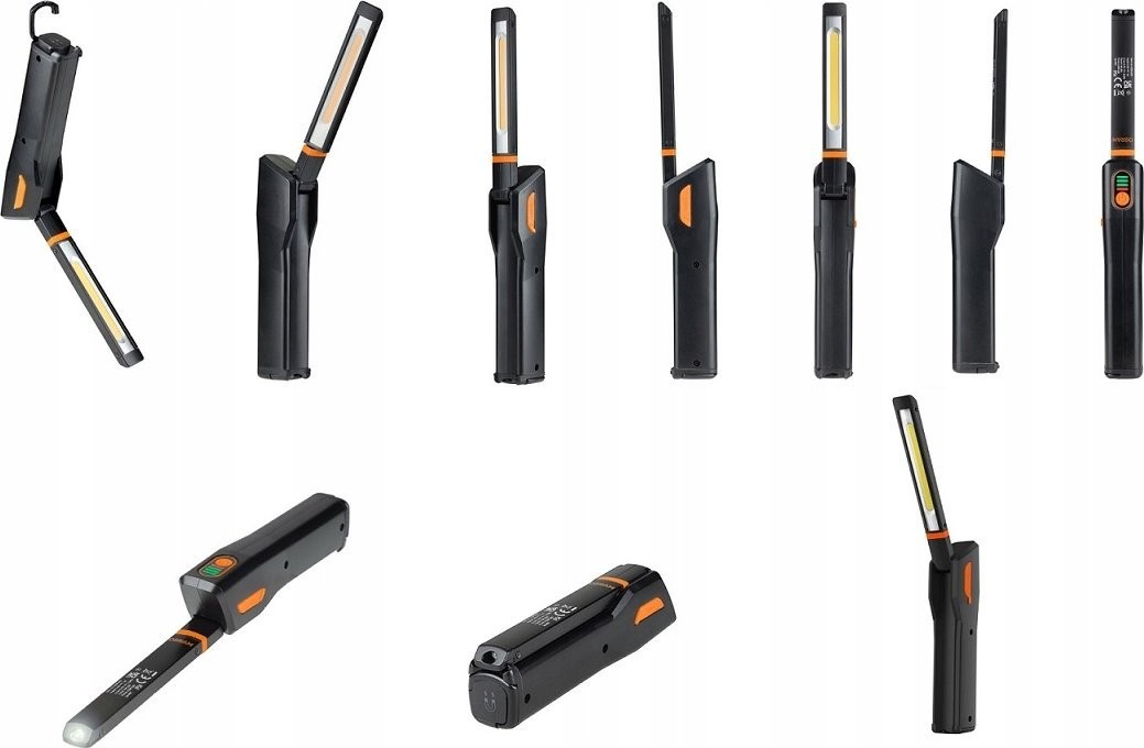 Ultra płaska konstrukcja w połączeniu z wielokątowym pozycjonowaniem z możliwością skrętu o 270° i obrotu o 180° pozwala na skierowanie wiązki światła dokładnie tam, gdzie jest potrzebna.Żarówka warsztatowa posiada akumulator i jest wyposażona w zintegrowany wskaźnik poziomu naładowania baterii.