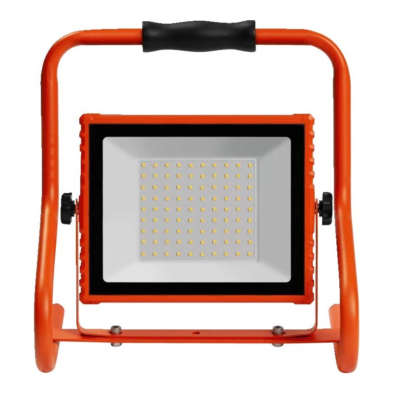 Lampa robocza została wykonana z lekkiego, ale trwałego aluminium oraz plastiku, co zapewnia jej długowieczność i łatwość w przenoszeniu. Pomarańczowy kolor sprawia, że jest dobrze widoczna w różnych warunkach, co zwiększa bezpieczeństwo podczas pracy.