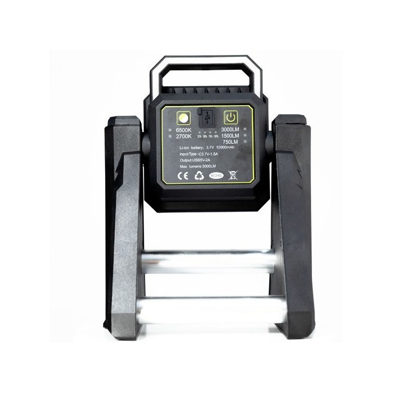 Reflektor nie tylko dostarcza światło, ale również pełni funkcję powerbanku, co umożliwia ładowanie innych urządzeń elektronicznych. To sprawia, że jest to doskonałe rozwiązanie w sytuacjach, gdy dostęp do tradycyjnego zasilania jest ograniczony.