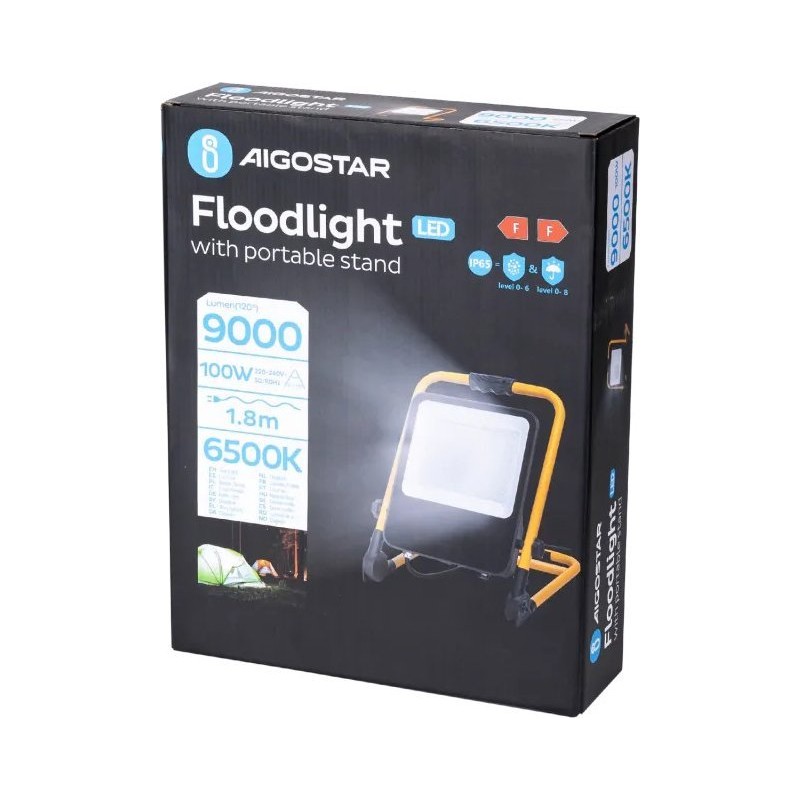 Aigostar Przenośny halogen roboczy 100W 6500K z przewodem Przenośna lampa robocza 100W 6500K odlewana ciśnieniowo z przewodem