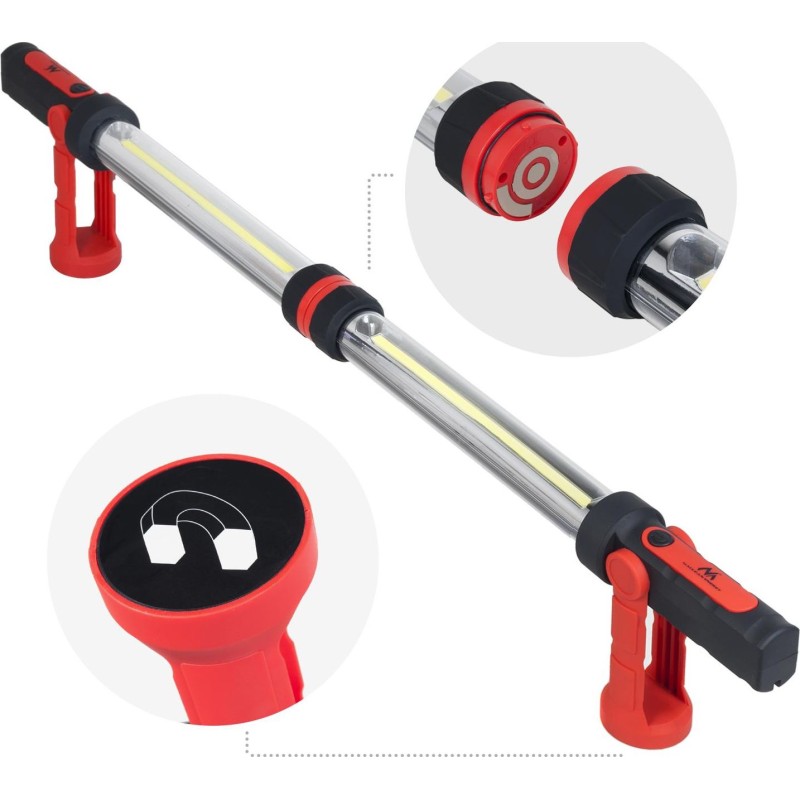 Dwie lampy z super jasnymi diodami LED COB idealnie nadają się do warsztatu, garażu jak również podczas domowych napraw i majsterkowania. Nowa generacja super jasnych diod COB LED o żywotności do 100 000 godzin zapewnia bardzo długą i bezawaryjną pracę.Dzięki zastosowaniu technologii LED COB (pasek diodowy) lampa daje dużo więcej światła w porównaniu do tradycyjnych, a przy tym jest dużo bardziej oszczędna. Lampy można połączyć ze sobą za pomocą wbudowanych magnesów, dzięki czemu otrzymujemy jedną dużą lampę warsztatową o bardzo jasnym strumieniu świetlnym 1200 lumenów! Komfort użytkowania zapewnia możliwość zamocowania lamp zarówno do metalowych powierzchni za pomocą wbudowanych magnesów, jak również powieszenia na obrotowych haczykach, na przykład pod maską samochodu. Lampy posiadają wbudowane akumulatory litowo-jonowe o pojemności 2000 mAh. W pełni naładowane akumulatory wystarczają na 2 godziny pracy. W zestawie znajduje się ładowarka USB wraz z kablem do ładowania. EAN: 5902211111849 Gwarancja: gwarancja zewnętrzna 24 miesiące Kod dostawcy: MCE230 Rodzaj: Biurkowa Źródło światła: Diody LED Akcesoria w zestawie: Ładowarka USB Kabel do ładowania Instrukcja obsługi Opakowanie producenta Dowód zakupu Kolor: Czerwony
