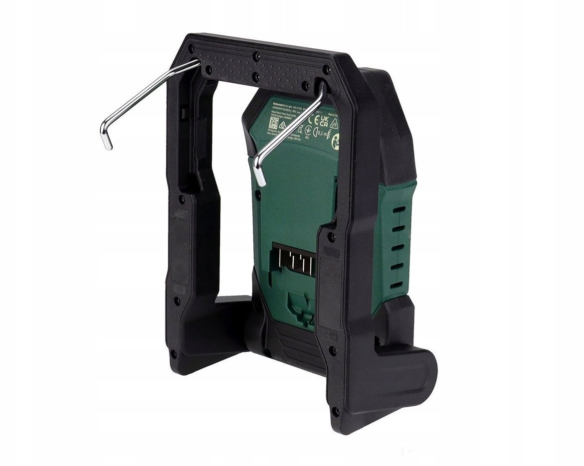 Bosch UniversalWorkLight 18V-2100 została wyposażona w elastyczne opcje montażu, w tym zintegrowane haki i magnesy. Dzięki temu możesz łatwo przymocować lampę do drabiny, drzwi czy grzejnika, co znacznie ułatwia jej użytkowanie.