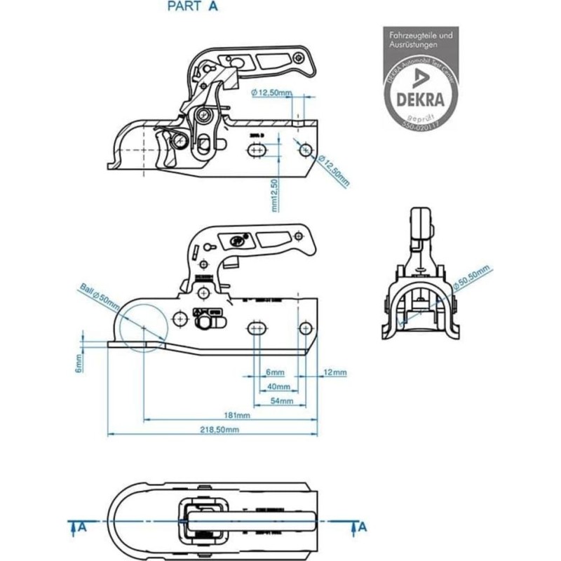 Dzięki ocynkowanej powierzchni zaczep jest wyjątkowo wytrzymały. Nadaje się do przyczep o wadze do 3000 kg.