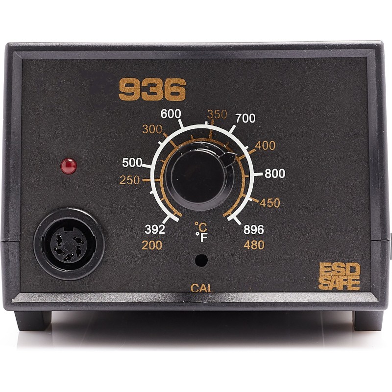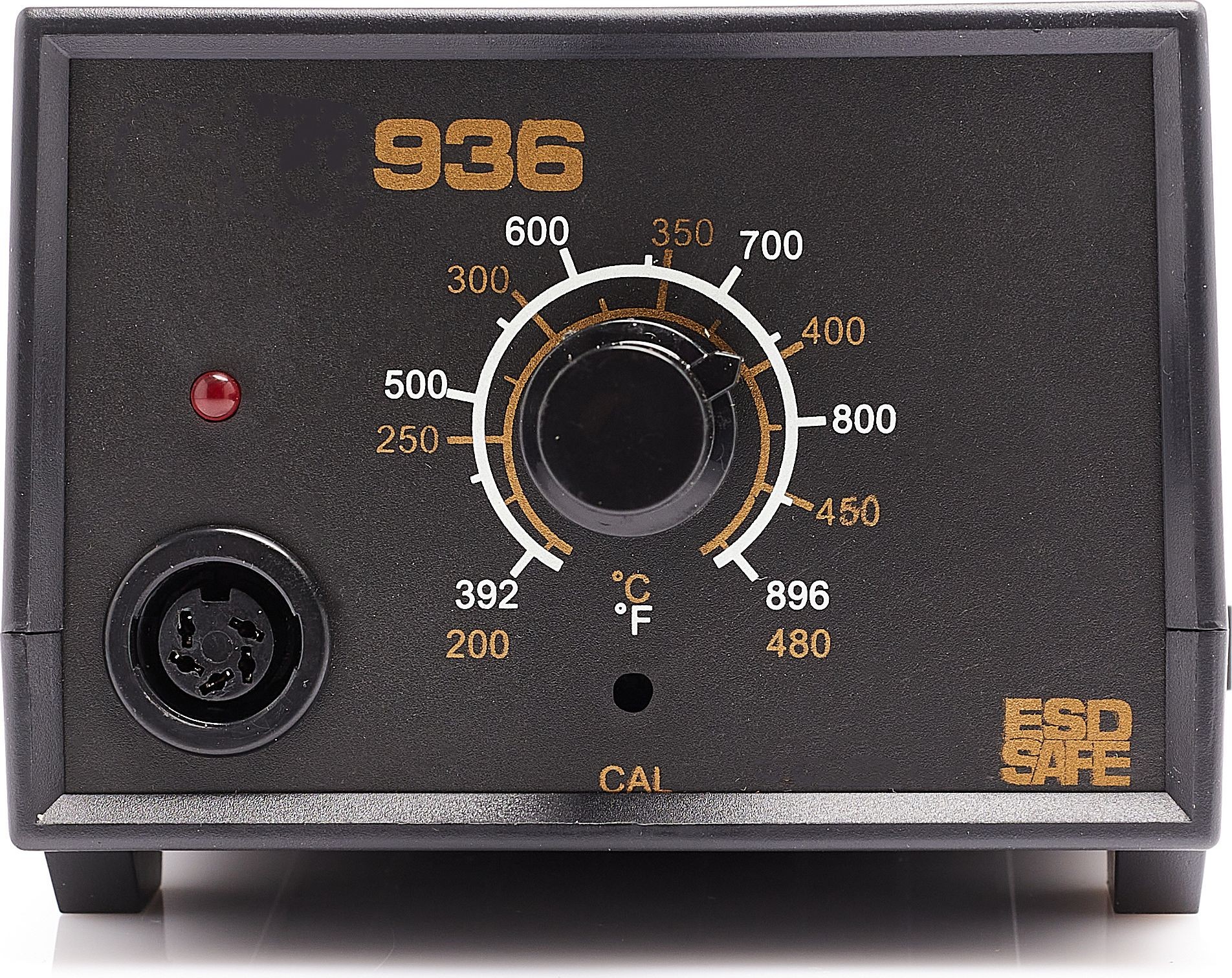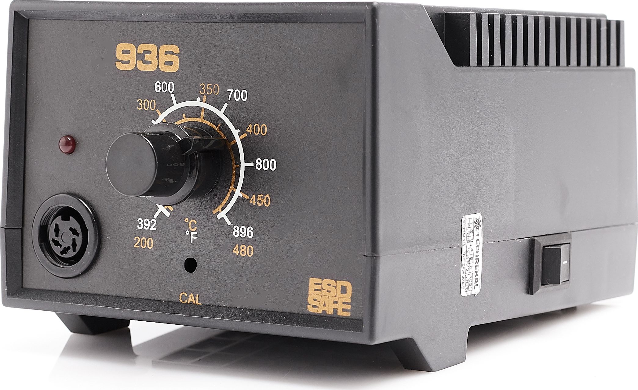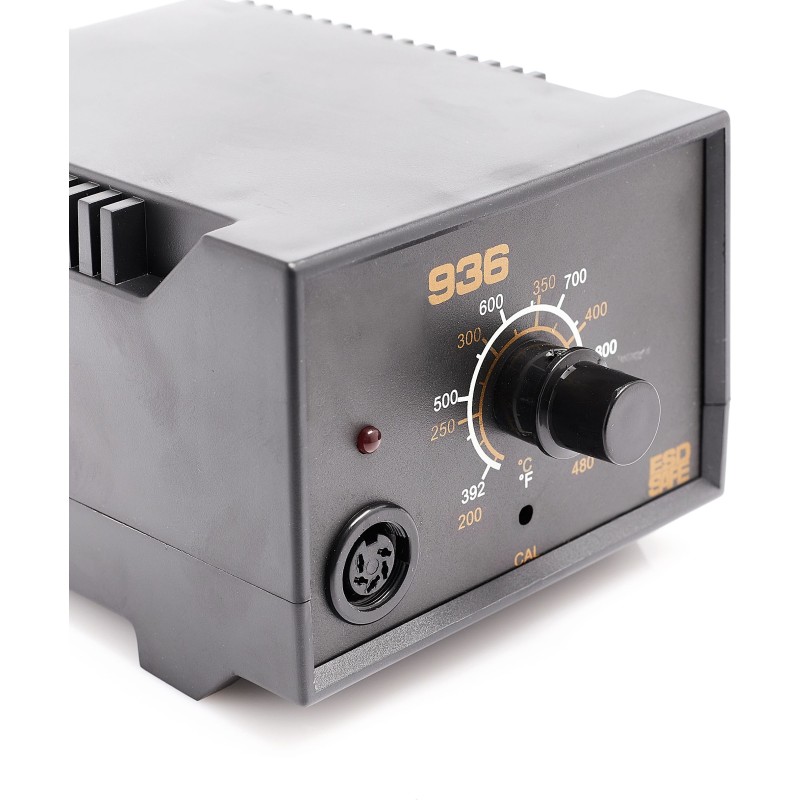 Stacja lutownicza w zestawie z kolbą 907 o bardzo dużej mocy szczytowej, dzięki której można w niewielkim czasie nagrzać grot do pożądanej temperatury. Wyposażona jest również w zabezpieczenie - ESD SAFE które chroni ją przed przegrzaniem. 936 jako najbardziej niezawodny, sprawdzony model, idealny do zastosowania hobbistycznego, jak i małych serwisów, idealna stacja aby rozpocząć swoją przygodę z lutowaniem. Stacja z regulacją temperatury w zakresie od 200°C do 480°. Budowa stacji nie jest skomplikowana, dlatego też urządzenie jest praktycznie bezawaryjne. Stacja posiada stabilizacje temperatury, czyli utrzymanie zadanej temperatury podczas lutowania.