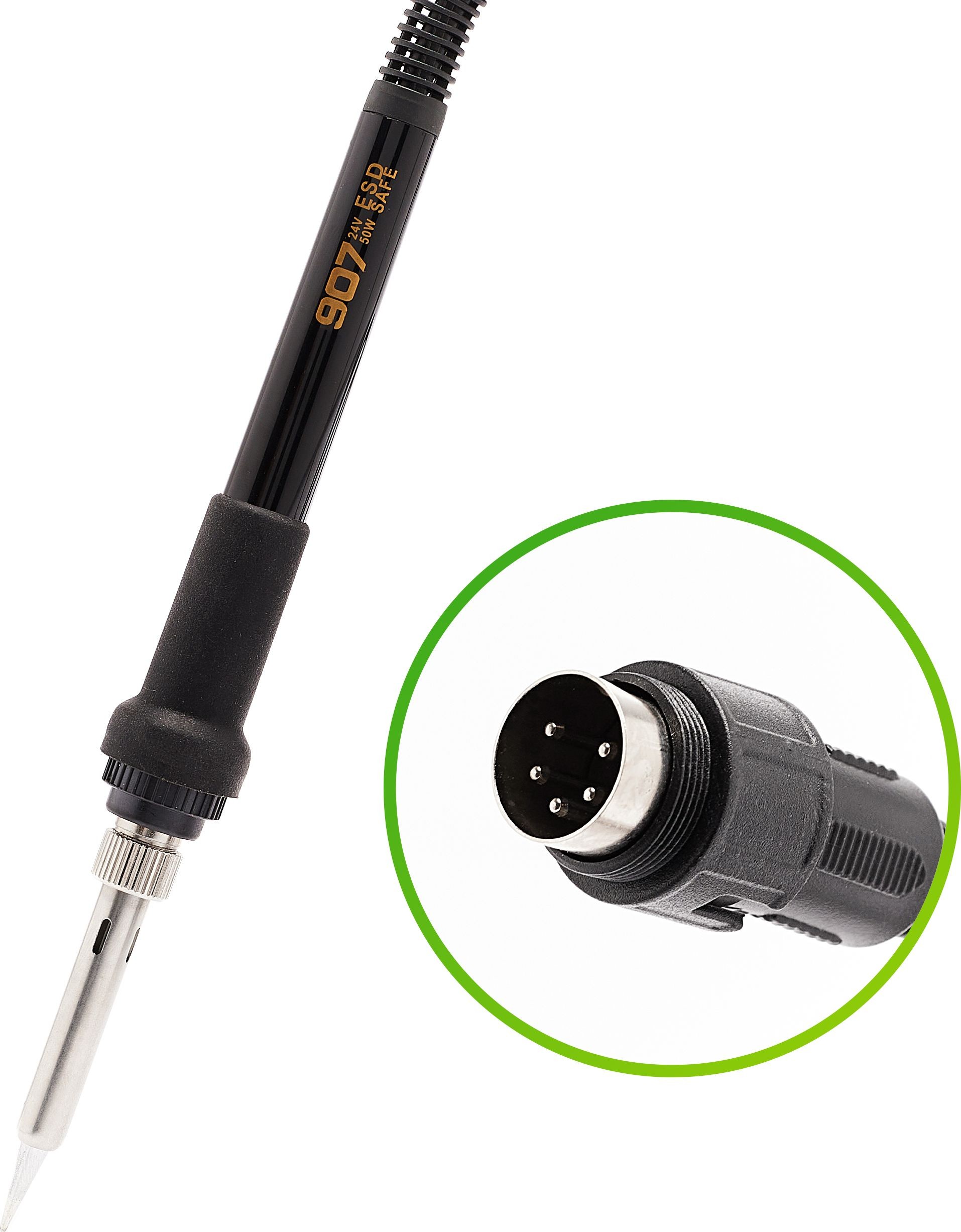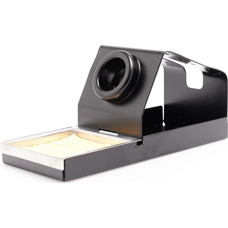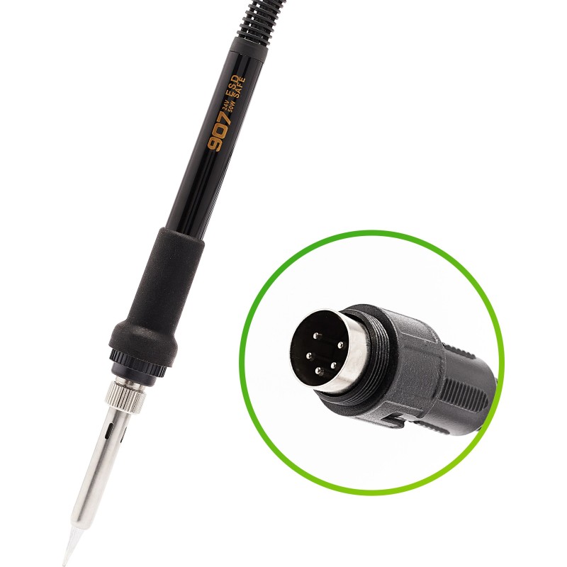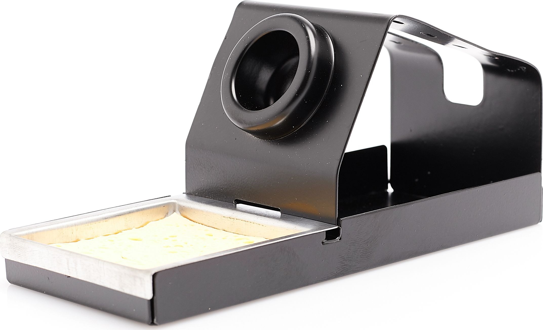 Uchwyt na kolbę z gąbką którą należy zwilżyć wodą przed użyciem. Stacja wyposażona jest w kolbę 907 (Nie mylić z 907A), który posiada wszystkie elementy wymienne. Z kolbą kompatybilne są groty 900M - wiele modeli, które można dopasować do swoich potrzeb, również dostępne w wielu wariantach w naszym sklepie.