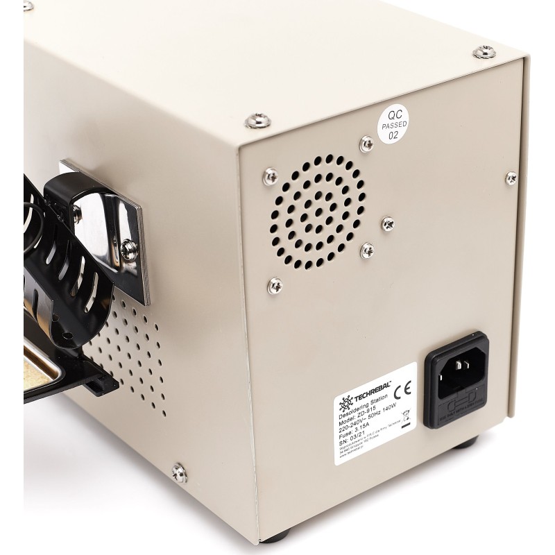 Stacja lutownicza służąca do demontażu elementów elektronicznych z płytek drukowanych PCB. Stacja z wbudowanym wewnętrznym kompresorem, który po naciśnięciu spustu pistoletu uruchamia się wytwarzając podciśnienie. W porównaniu do zwykłych odsysaczy jest wygodniejsza, oraz pozwala na szybszą pracę - sama podgrzewa cyne. Jednostka centralna wyposażona została w duży i czytelny wyświetlacz LCD z podświetlenie, który ukazuję ustawioną wartość temperatury, oraz temperaturę zmierzoną (odczytaną) z grotu lutownicy. Temperatura regulowana jest ze skokiem 1°C w zakresie od 160°C do 480°C. Wydajna grzałka o mocy 90W poradzi sobie w wielu trudnych wypadkach.