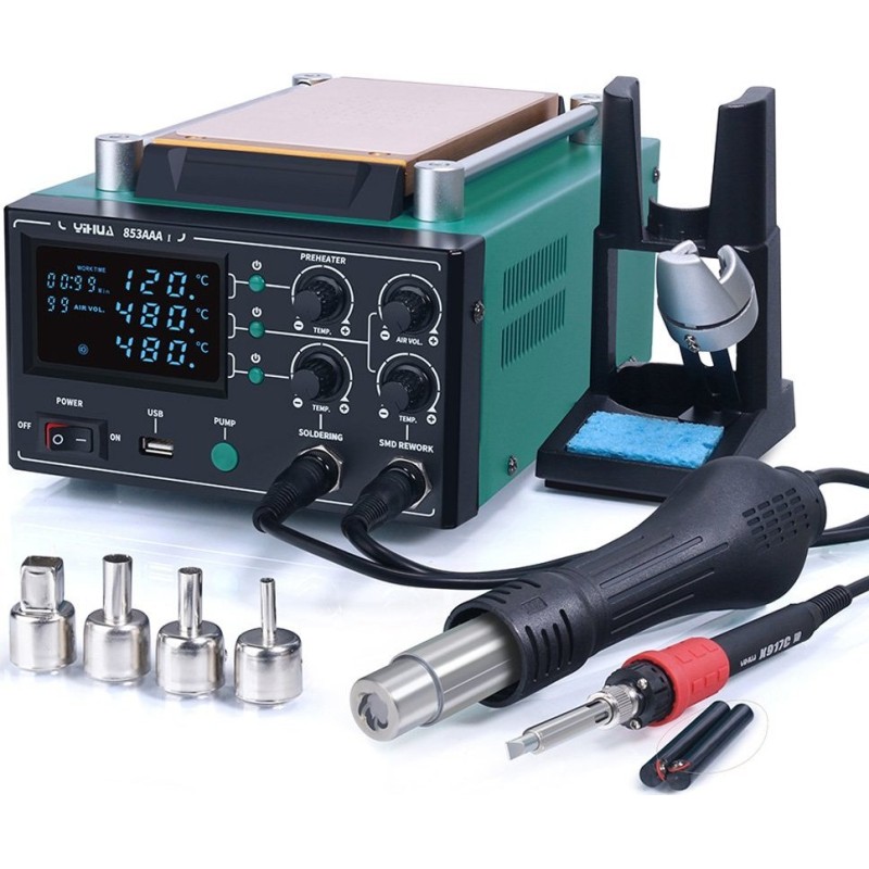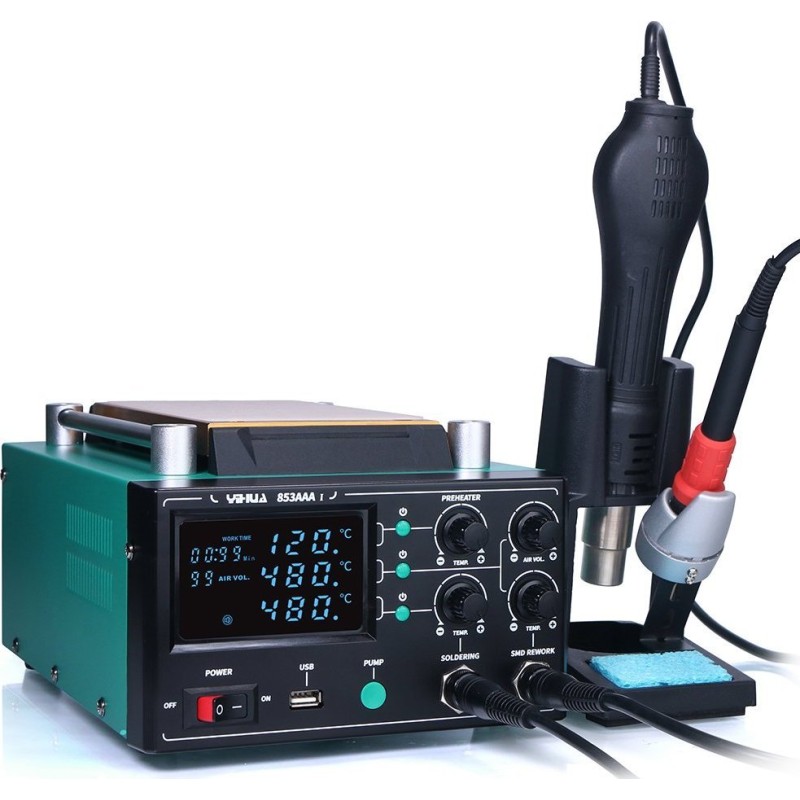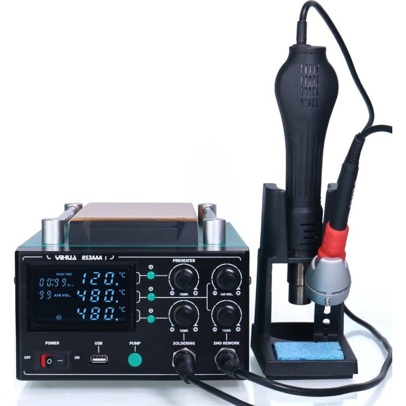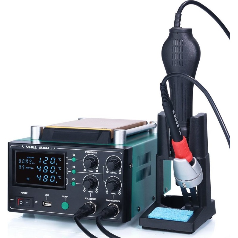 Stacja lutownicza 3w1 (lutownica grotowa 110W, hot-air, separator) Yihua 853AAA-I