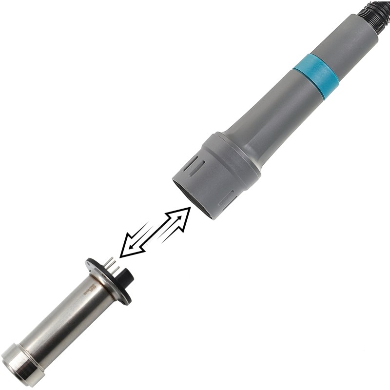 Stacja lutownicza, wyposażona w mocną turbinę, gwarantuje znakomitą wydajność. Jej ceramiczny element grzejny szybko osiąga pożądaną temperaturę, co pozwala na efektywne i szybkie prace lutownicze.