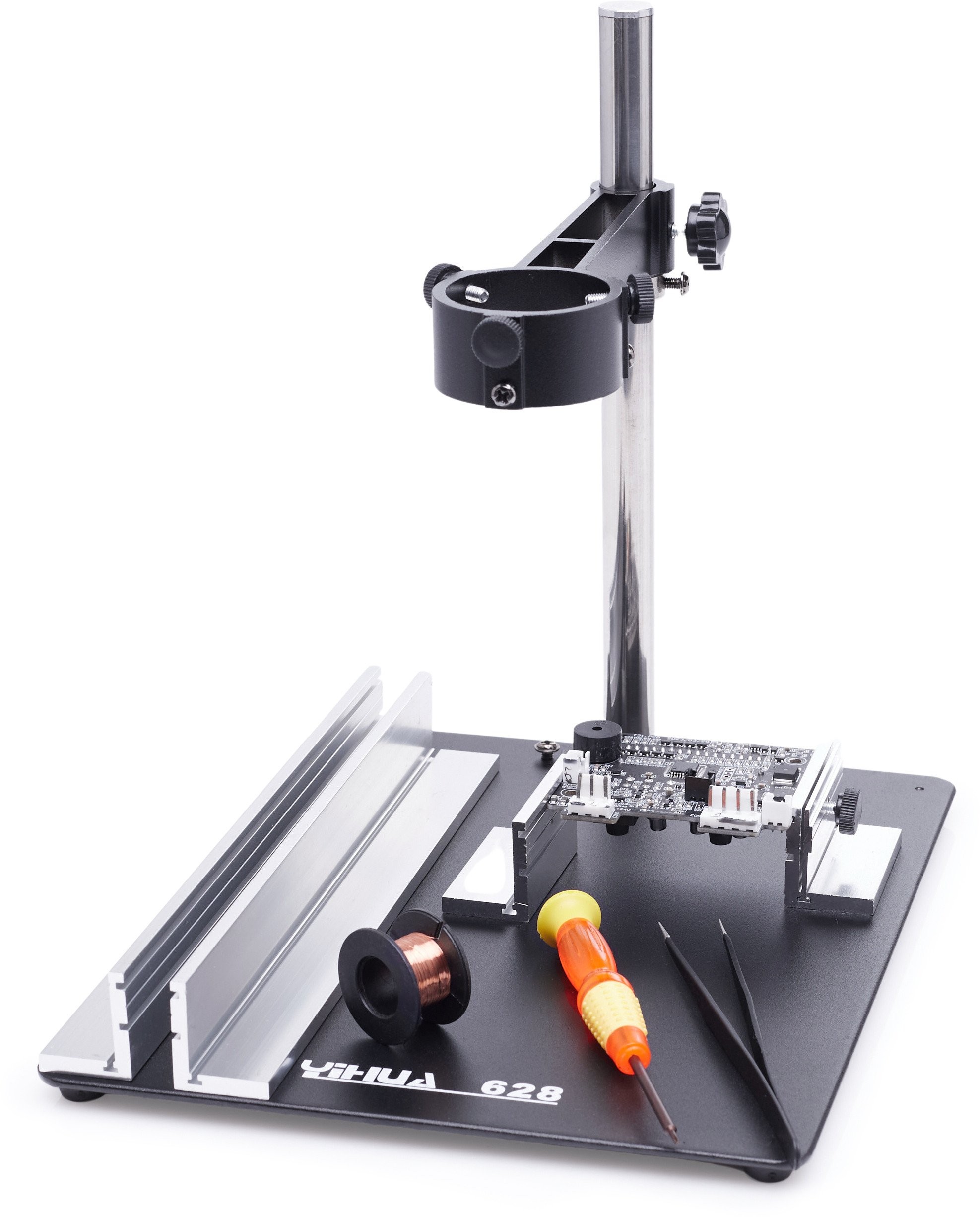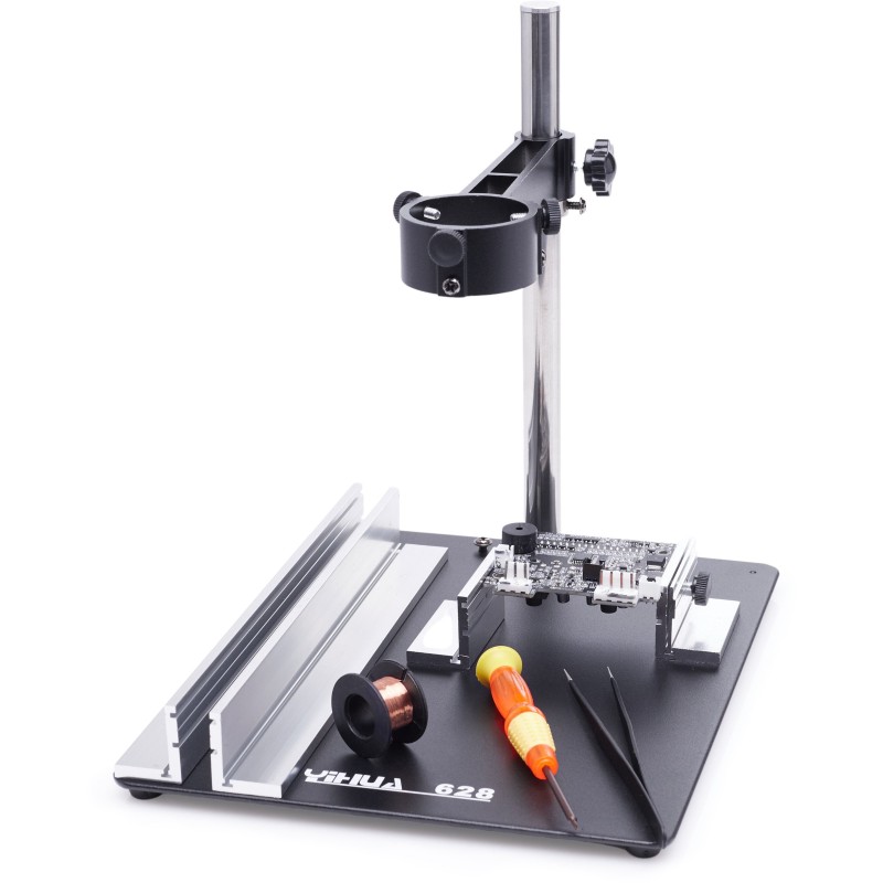 W zestawie znajduje się uchwyt na kolbę Hot-Air z magnetycznym stolikiem Yihua 628, który zapewnia komfort pracy, umożliwiając zwolnienie rąk podczas lutowania. To innowacyjne rozwiązanie zwiększa efektywność i wygodę użytkowania.