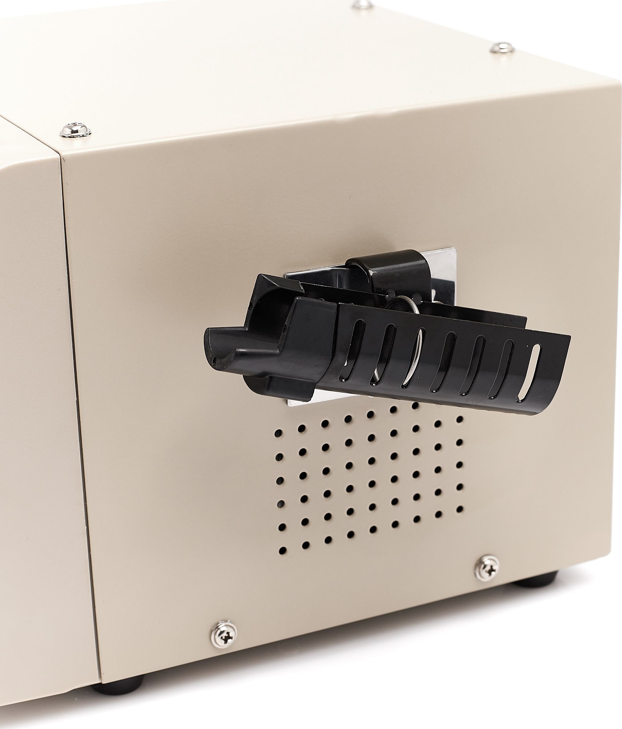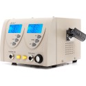 Jednostka centralna - Lutownice na grot oraz na rozlutownica są sterowane przez dwa niezależne mikroprocesory. Dzięki systemowi cyfrowej kontroli temperatury oraz wysokiej jakości czujnikom, ustawiona podczas lutowania temperatura grota jest dokładna i stała. Dzięki tym właściwościom i dużej mocy lutownica idealnie nadaje się do lutowania bezołowiowego. Zamontowana pompa powietrza charakteryzuje się cichą pracą o. Na stacji wyświetlana jest temperatura zadana jak i aktualna, wyświetlacze podświetlane są na niebiesko.