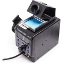 Stacja lutownicza na gorące powietrze (hot-air) oraz lutownicę grotową, urządzenie służy do lutowania i wylutowywania elementów w elektronice, sprawdzi się zarówno dla hobbistów, jak i profesjonalnych warsztatów. Urządzenie charakteryzuje kompaktowa obudowa, która zajmuje niewiele miejsca.