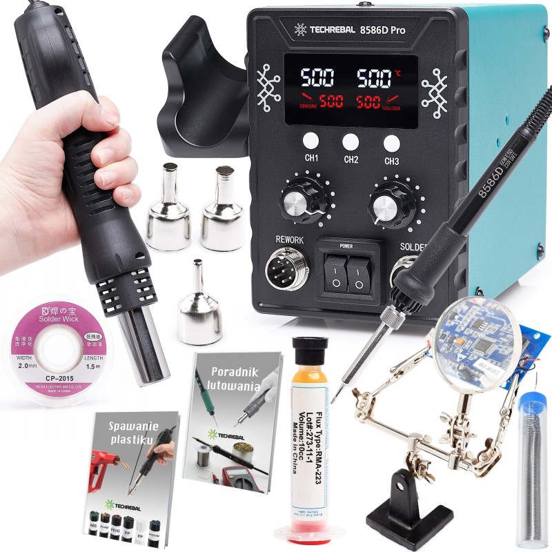 Stacja lutownicza 2w1 Techrebal HotAir + Kolbowa 8586 760W + KIT34