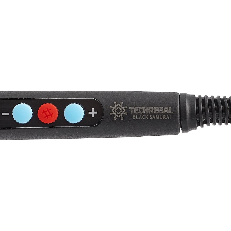 ⚡ Black samurai, czyli flagowa lutownica Techrebal, czarny wojownik który sprawdzi się do większości prac lutownic. Doskonała jakość wykonania połączona z pięknym designem, który zadowoli nawet bardzo wymagającego użytkownika. Profesjonalna, mocna i precyzyjna lutownica 60W z możliwością dostosowywania temperatury w zakresie 180 °C - 500 °C, przenośne urządzenie z dokładnym wyświetlaczem, bardzo szybko nagrzewające się do zadanej temperatury.