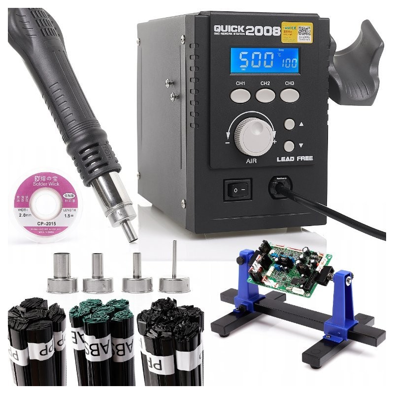 Zestaw Stacja Lutownicza Hot-Air Quick 2008 + Plecionka + Uchwyt PCB + Spoiwa ABS + PP + PP/EPDM