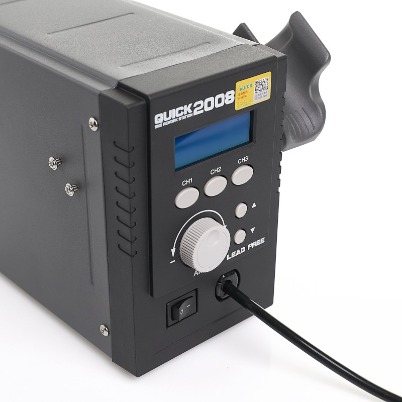 ✅ Wszechstronne zastosowanie: Dzięki możliwości precyzyjnej regulacji temperatury i przepływu powietrza, stacja QUICK 2008 nadaje się do pracy z szerokim spektrum komponentów elektronicznych, od delikatnych układów SMD po większe elementy wymagające intensywnego nagrzewania.