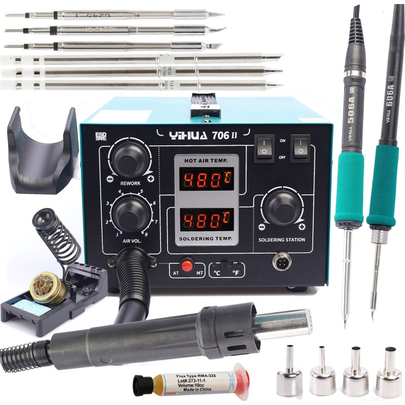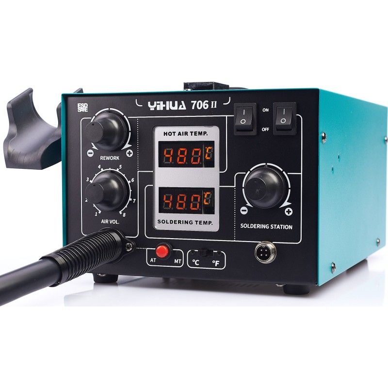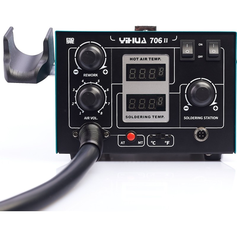 Zestaw Stacja lutownicza 2w1 Hot-Air 706 II z systemem T12 Yihua z 5 dodatkowymi dyszami