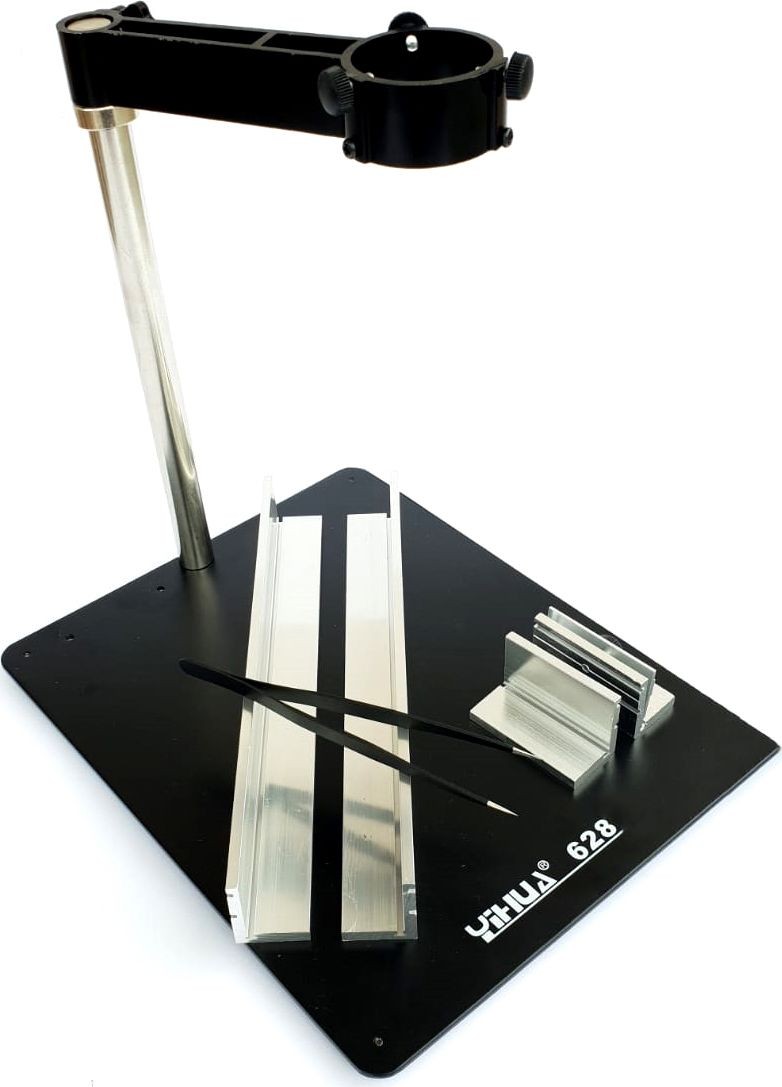 Yihua 628 jest niezastąpionym elementem każdego serwisu, dodaje nam dużo komfortu, dzięki uchwytowi na kolbę gorącego powietrza dostajemy wolną rękę, co jest bardzo ważne przy pracy. W połączeniu z metalową podstawą oraz metalowymi uchwytami magnetycznymi o dwóch rozmiarach stanowi idealne miejsce pracy.