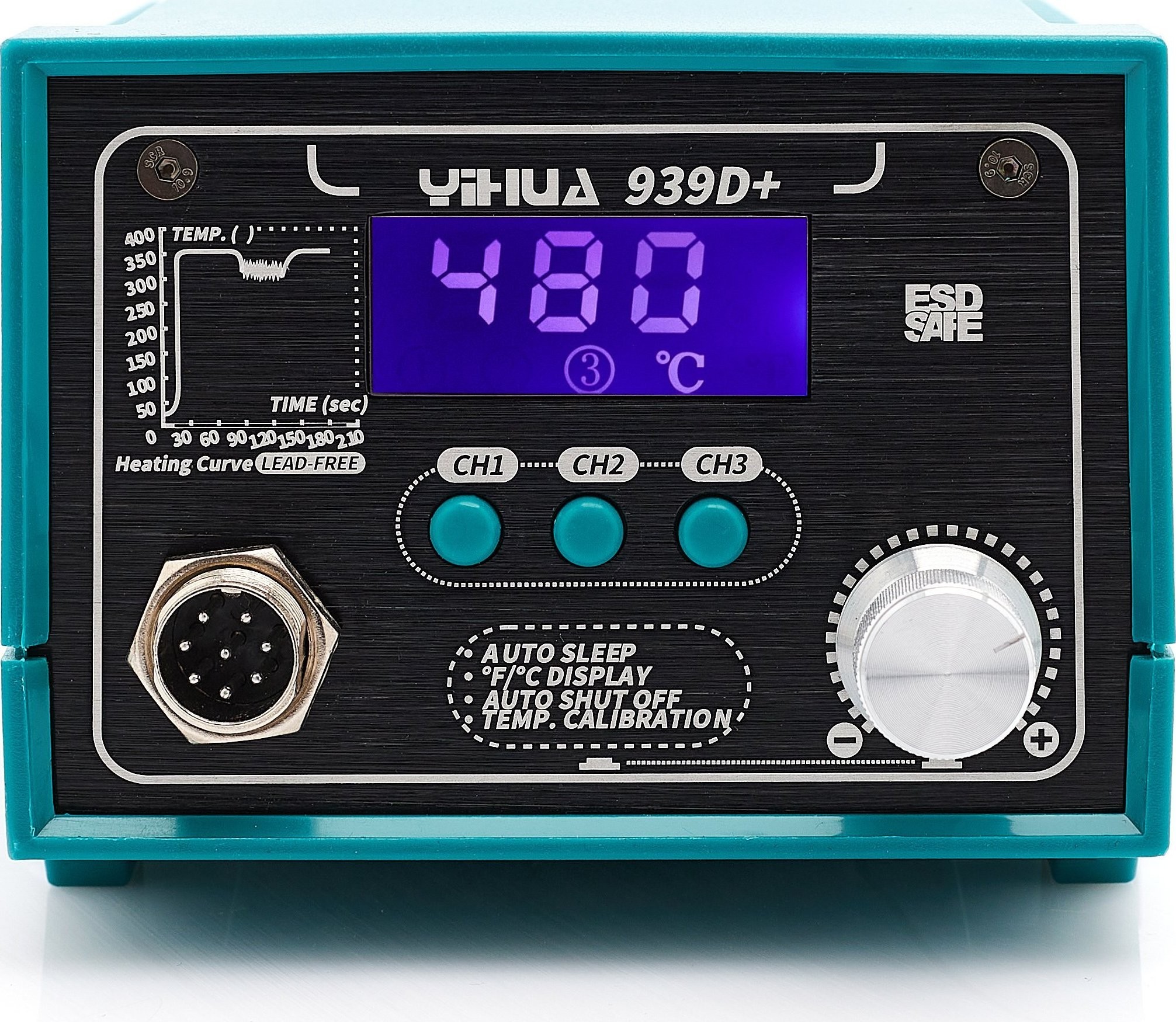 ⚡ największą zaletą stacji Yihua 939D+ jest jej duża moc (75W), dzięki której grot szybko się nagrzewa do zadanej temperatury