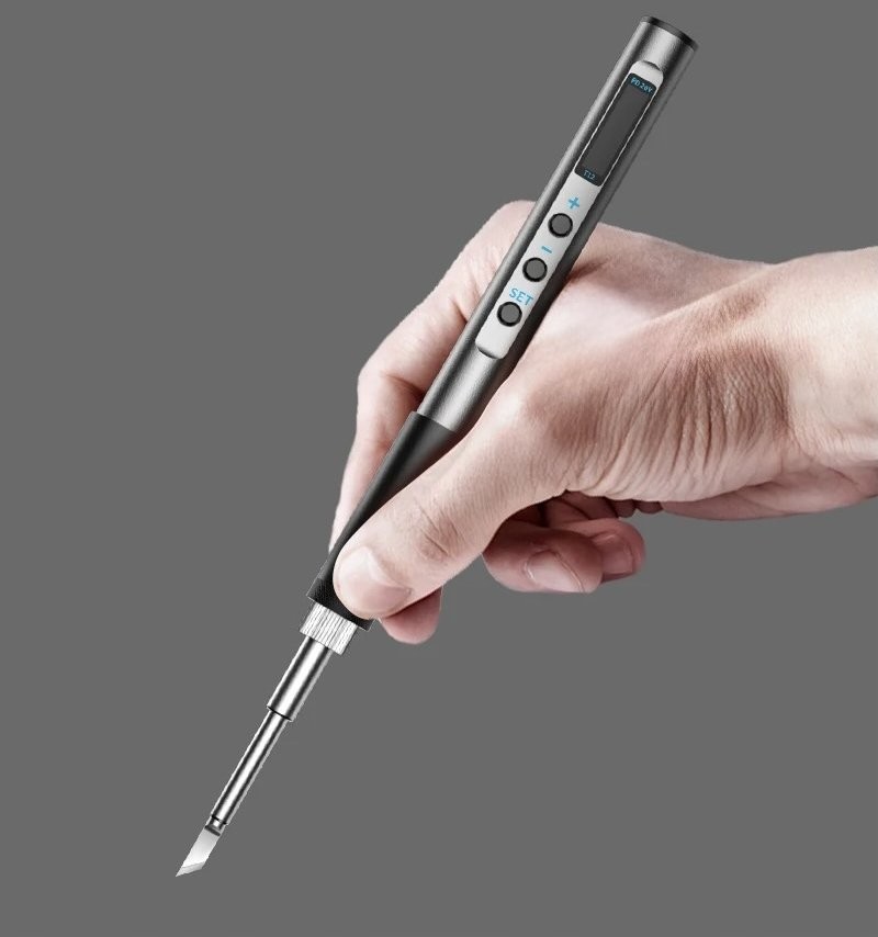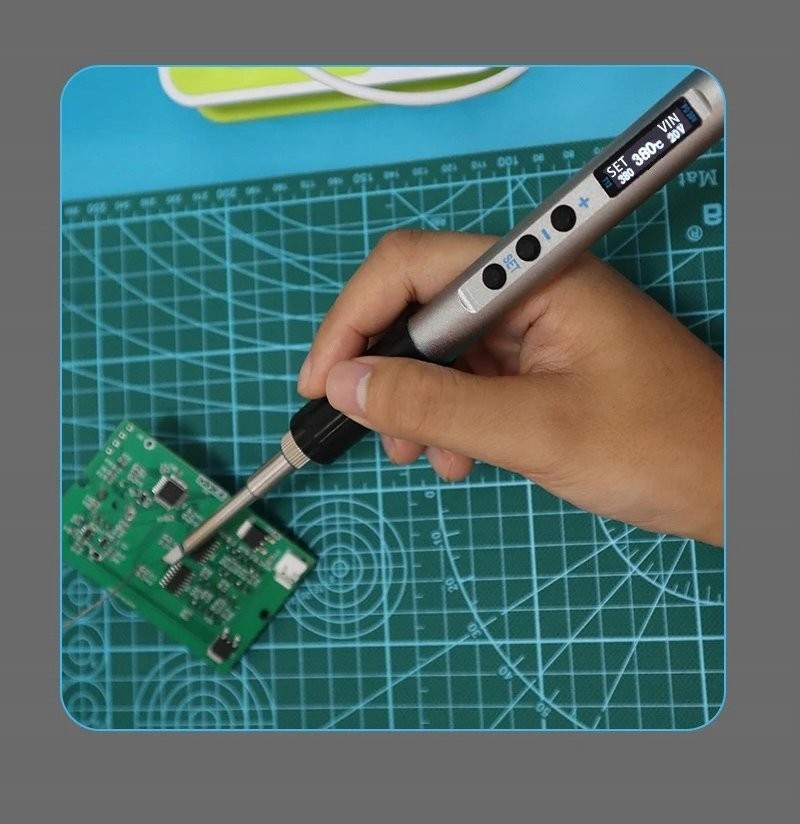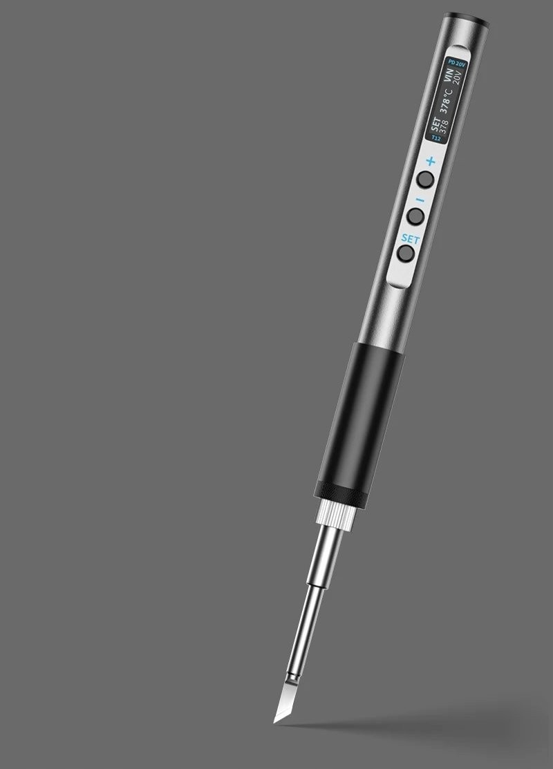 - W zestawie: lutownica precyzyjna USB T12 OLED 65W, grot T12-K, podstawka pod lutownicę z gąbką, przewód zasilający USB-C, instrukcja obsługi
