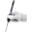 Lutownica została wyposażona w funkcje automatycznego wyłączania oraz tryb uśpienia po 10 minutach nieaktywności, co zwiększa bezpieczeństwo użytkowania oraz oszczędza energię.