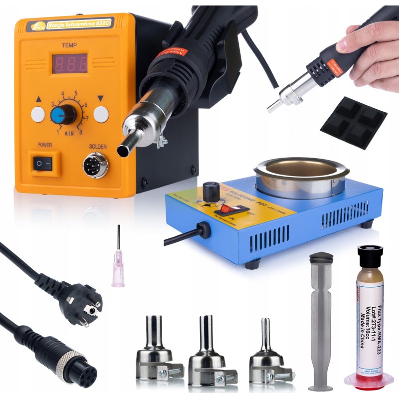 Rosfix ZESTAW STACJA LUTOWNICZA HOT-AIR ROSFIX 858D DYSZE + TYGIEL + FLUX RMA-223