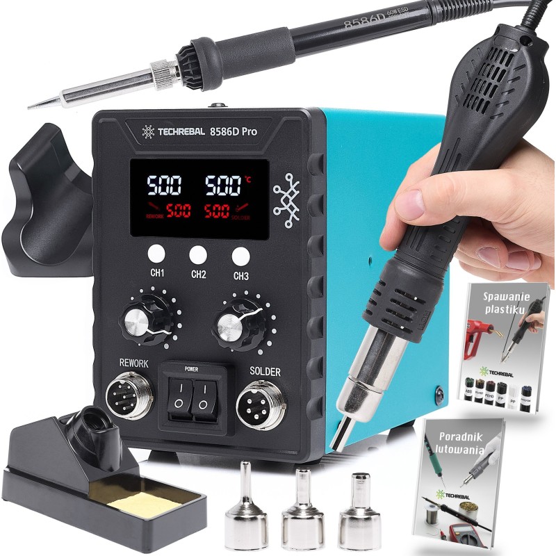 Stacja Lutownicza 2w1 Grotowa Hot Air Techrebal 8586D Pro 760W 3x Dysza