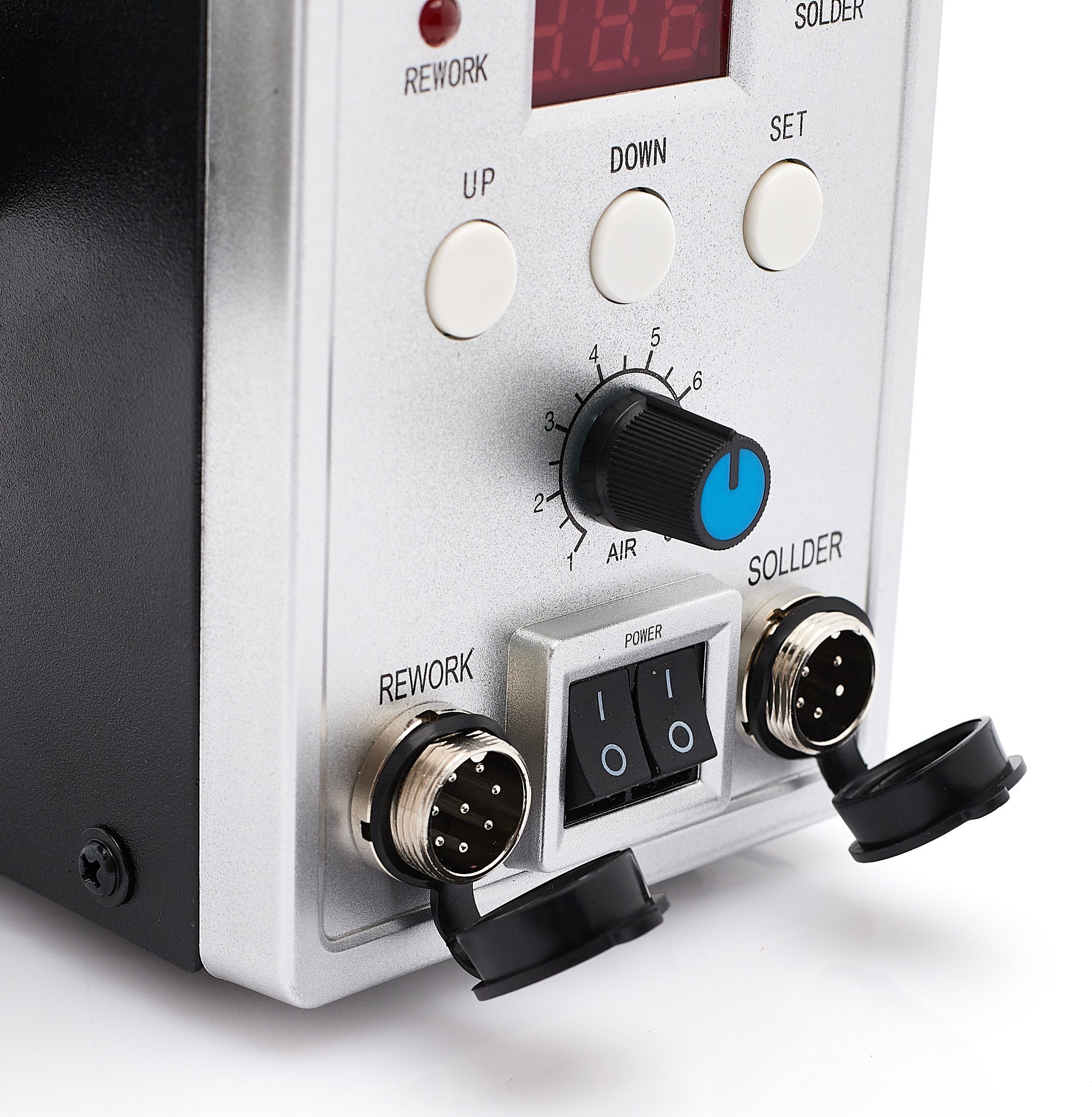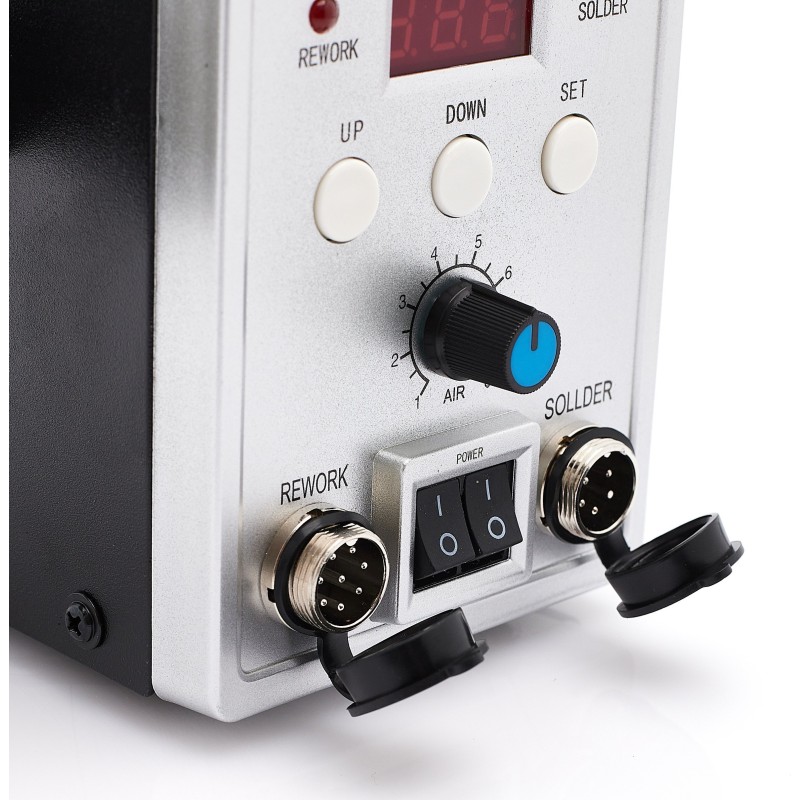 ⚡ Można używać gorącego powietrza i lutownicy kolbowej równocześnie. Wystarczy przełączać się przyciskiem SET, aby zobaczyć czy ustawić temperaturę. Dioda na stacji symbolizuje, która temperatura jest właśnie pokazywana.