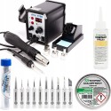 Profesjonalny sprzęt do lutowania zarówno grotowego, jak i gorącego powietrza. Całkowita moc stacji wynosi 700 W. Urządzenie posiada możliwość regulacji temperatury, tryb czuwania oraz wyświetlacz LED.