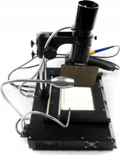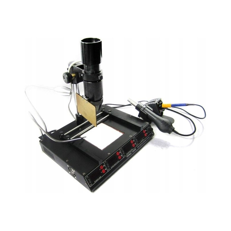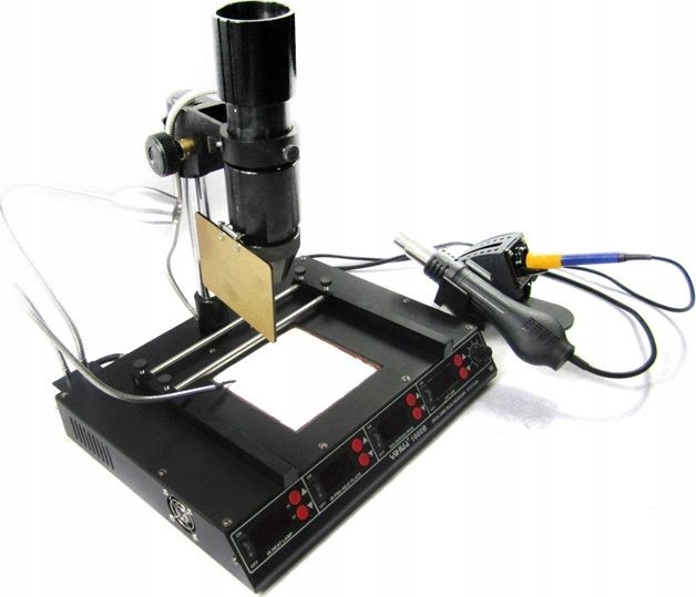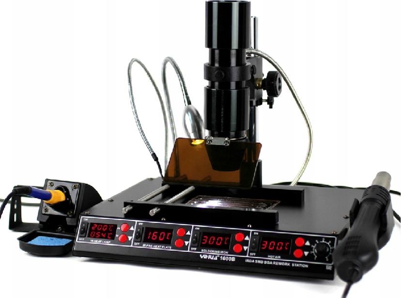 Nowy model stacji lutowniczej wykorzystujący najnowszą technologię dostępną na rynku. Wyposażona w procesor Samsung do kontroli temperatury. Stacja łączy w sobie cztery funkcje Hot-Air w jednym urządzeniu. Gorące powietrze może być używane do rozlutowywania części o słabym odbiorze światła podczerwonego. Stacja zajmuje niewiele powierzchni roboczej co jest jej dodatkowym atutem, idealnie sprawdzi się do profesjonalnego serwisu. Dzięki zastosowaniu przyjaznej dla użytkownika konstrukcji, wykorzystujące podczerwień do wylutowywania, najnowsza sonda bezpieczeństwa do śledzenia w czasie rzeczywistym temperatur, wyładowań powierzchni IC, zapobiega uszkodzeniom cieplnym rozlutowywanych części, niezależnie od umiejętności użytkownika. Kolba gorącego powietrza wykorzystuje programowanie mikroprocesorowe PID o 100 ms śledzenie w czasie rzeczywistym temperatur na wylocie z pistoletu pneumatycznego i temperatur końcówki lutownicy, z widokiem w czasie rzeczywistym, temperatury są wyjątkowo stabilne. Przewód rękojeści wykorzystuje wysokotemperaturowy przewód silikonowy (odporny do 300 stopni, gdy końcówka lutownicy styka się z przewodem silikonowym przez 30 sekund); grzałka wykorzystuje element grzewczy dużej mocy do szybkiej kompensacji temperatury, w szczególności nadaje się do rozlutowywania nieoczyszczonych miejsc, dużych połączeń i trudno dostępnych miejsc. Maszyna posiada -50 ℃ do + 50 ℃ kompensacji temperatury. Światło podczerwone posiada funkcję regulacji mocy 5-80. Aby zaspokoić popyt na rynku w różnych regionach, firma opracowała tryb wyświetlania temperatury w Celsius / Fahrenheit.
