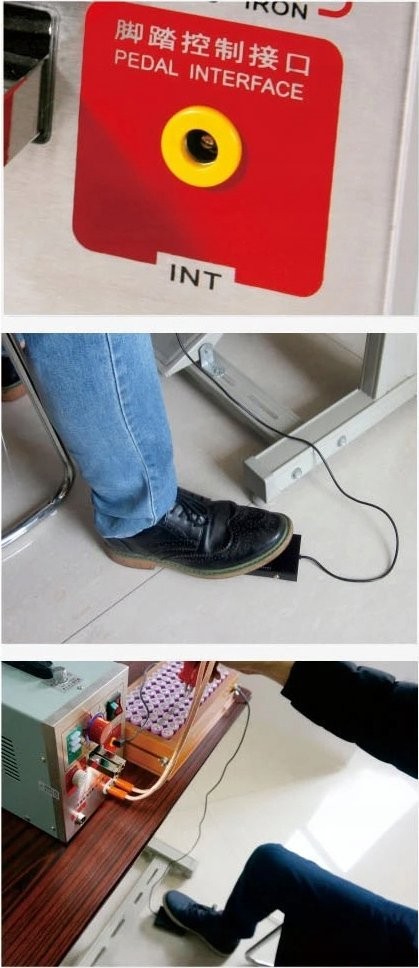 ✅ Wygody Sterowania Pedalowego: Zgrzewarka wyposażona jest w sterownik nożny, co pozwala na sterowanie maszyną za pomocą pedału, zapewniając swobodę ruchu, precyzję spawania oraz bezpieczeństwo.