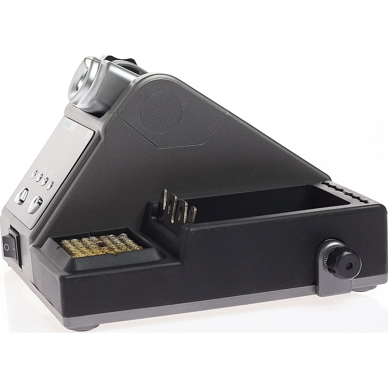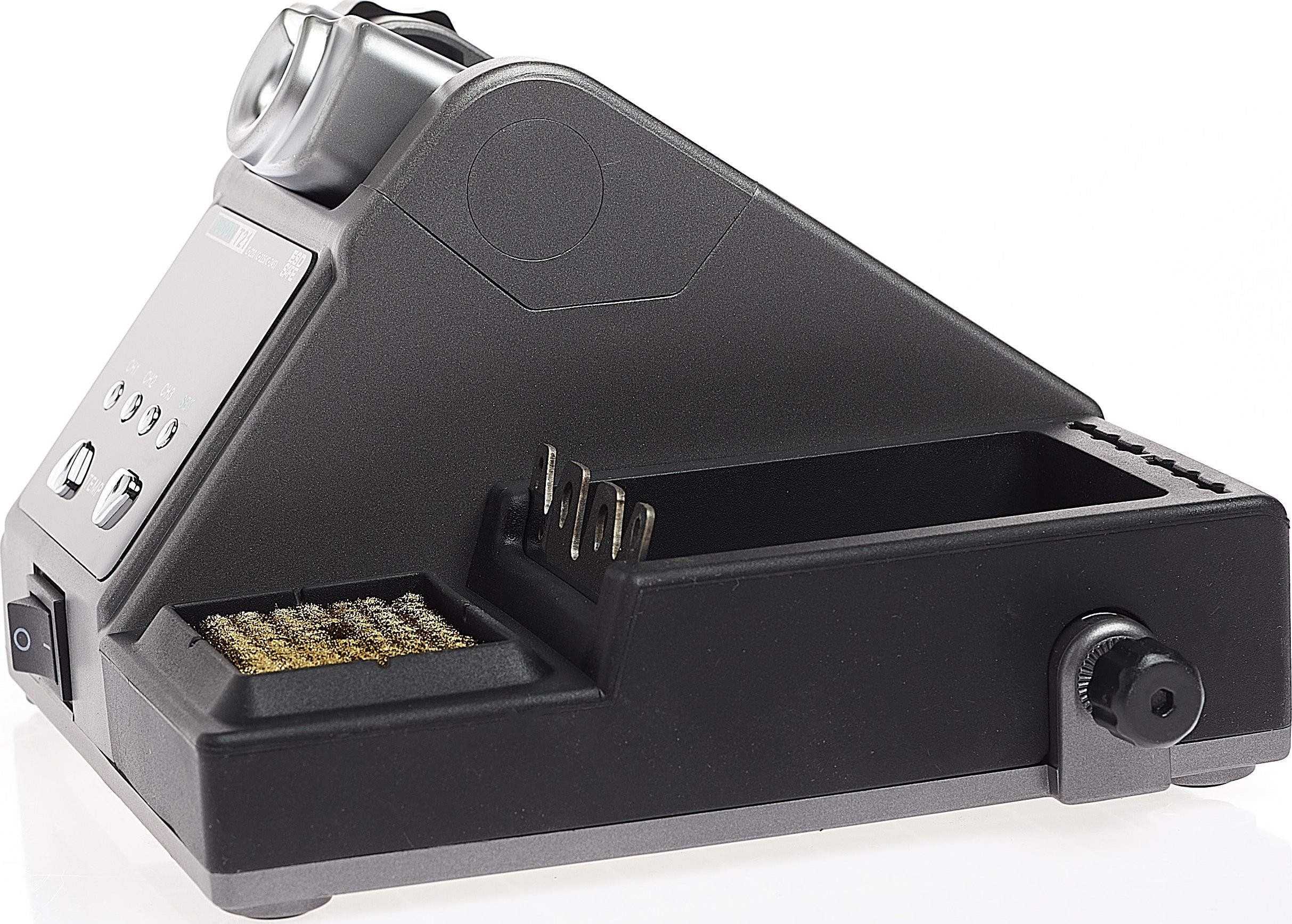 - Uniwersalność i elastyczność: Dzięki regulacji kąta nachylenia, stacja lutownicza staje się bardziej wszechstronna i uniwersalna, ponieważ użytkownik może dostosować narzędzie do różnych zastosowań i wymagań.