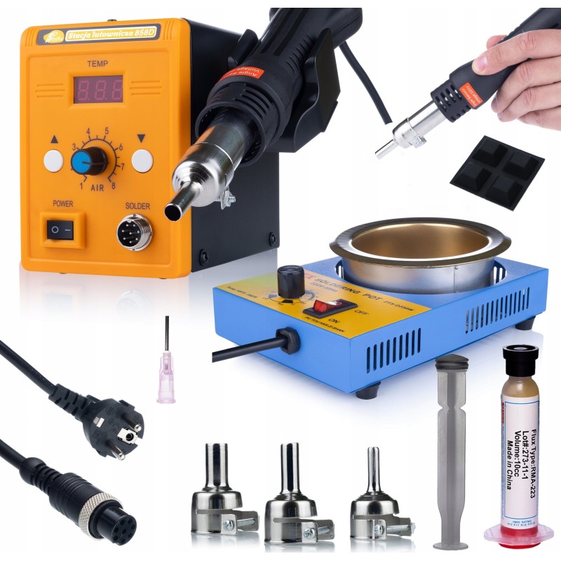 Profesjonalna Stacja Lutownicza Hot-Air Rosfix 858D + Tygiel 41-D 350W + Flux RMA-223