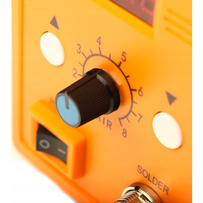 - Mocna Grzałka: Stacja jest wyposażona w mocną grzałkę, która pozwala na ekspresowe nagrzewanie się do żądanej temperatury. To oszczędza Twój czas i zwiększa wydajność pracy.