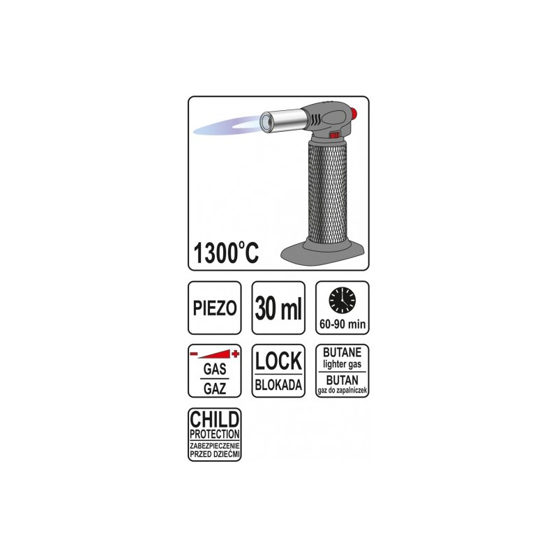 - palnik gazowy z zapłonem piezo zasilany gazem zapalniczkowym (butanem)