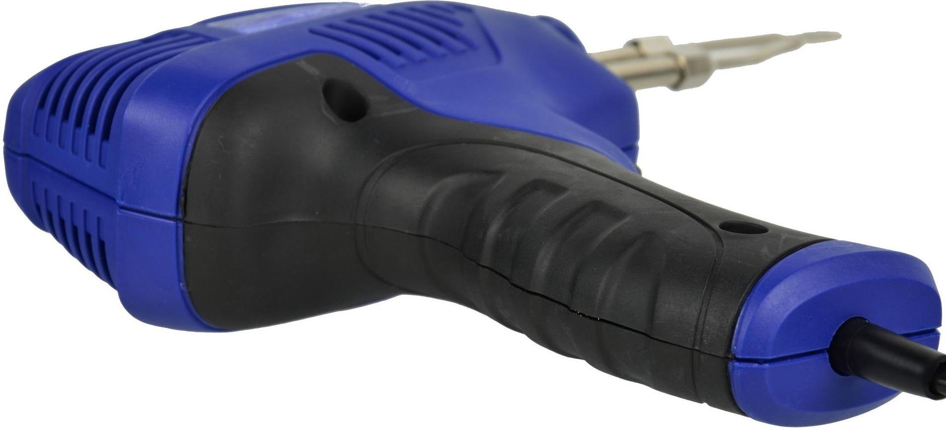 Lutownica transformatorowa o mocy 200W . Błyskawicznie nagrzewający się grot sprawia, że lutownica jest gotowa do pracy już po chwili od naciśnięcia spustu (włącznika). Lutownica służy do łączenia metalowych części za pomocą niskotopliwego spoiwa np. cyny. Urządzenie posiada 3-stopniowy przełącznik zmiany temperatury , dzięki czemu doskonale sprawdzi się podczas cięcia plastiku bądź rytowania w drewnie. Ponadto posiada diodę LED , która oświetla miejsce lutowania, co znacznie poprawia komfort pracy. Korpus lutownicy wykonany z wytrzymałego tworzywa wysokiej jakości. Cechy produktu: 3 stopnie ustawienia temperatury punktowe oświetlanie za pomocą diody LED ergonomiczna rękojeść moc 200 W korpus wykonany z wytrzymałego tworzywa sztucznego błyskawicznie nagrzewający się grot Specyfikacja techniczna: Napięcie: 230-240 V / 50 Hz Moc: 200 W Stopnie regulacji temperatury: A: 70-200°C - cięcie plastiku B: 200-350°C - lutowanie C: 350-500°C - rytowanie w drewnie