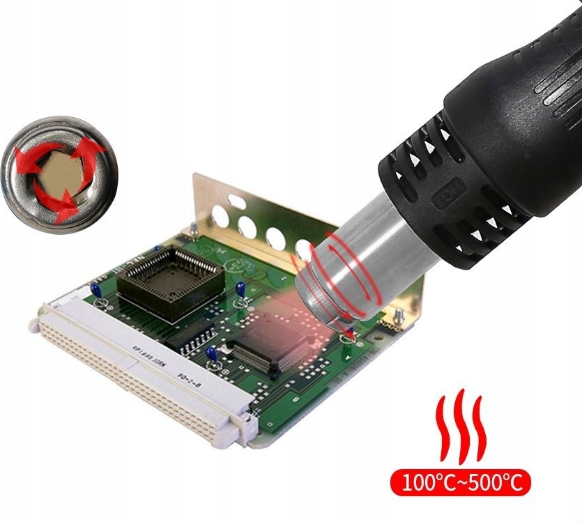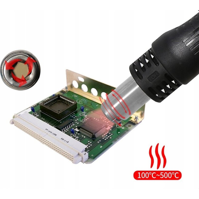 W zestawie znajdują się trzy wymienne dysze o średnicach 3,5 mm, 6,5 mm oraz 9 mm, co pozwala na precyzyjne dopasowanie strumienia powietrza do wykonywanych prac. Dzięki temu, lutownica jest niezwykle wszechstronna i sprawdzi się w wielu różnych zastosowaniach, od lutowania po formowanie i naprawę plastikowych elementów.