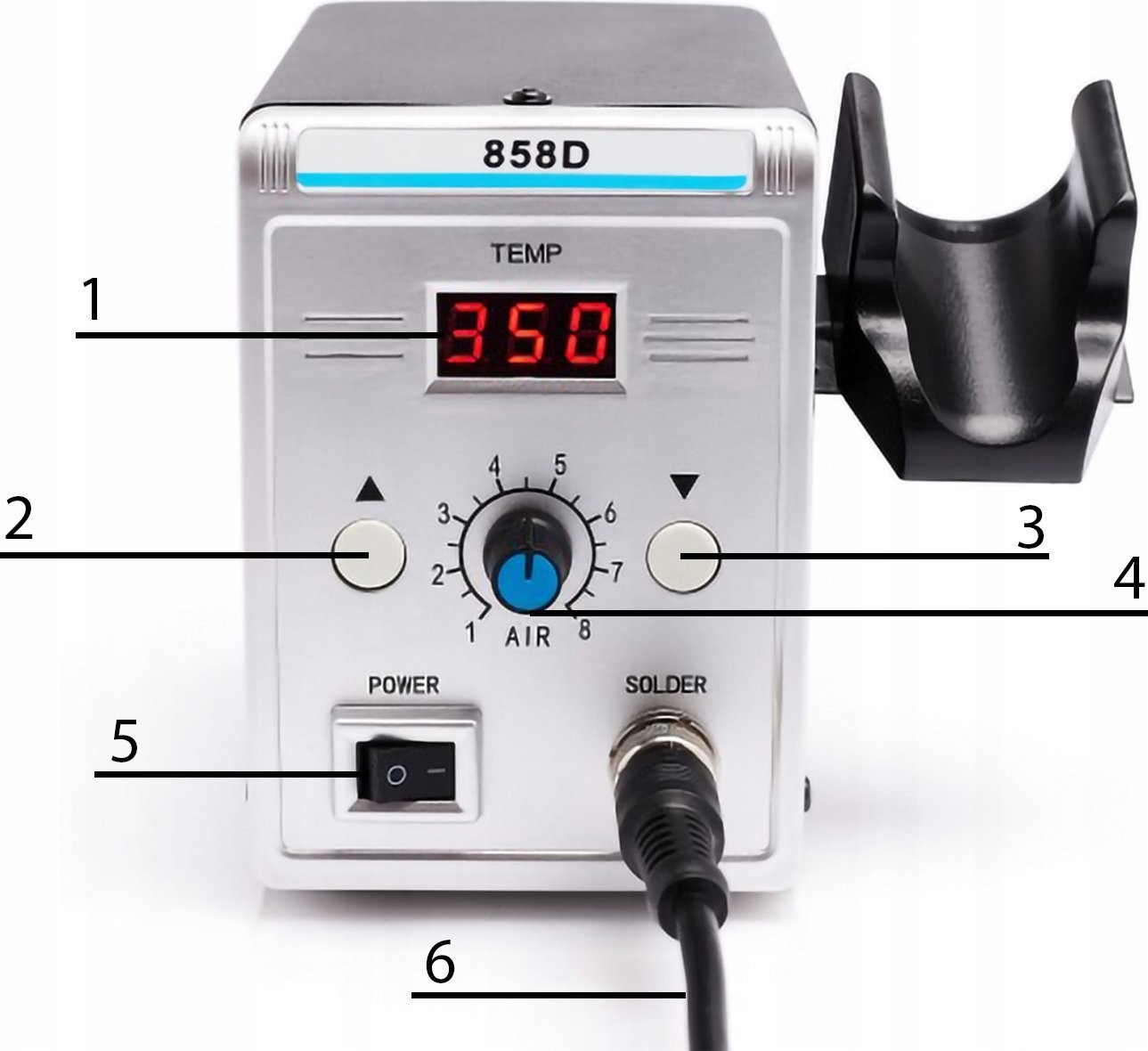 Specyfikacja techniczna lutownicy na gorące powietrze 858D