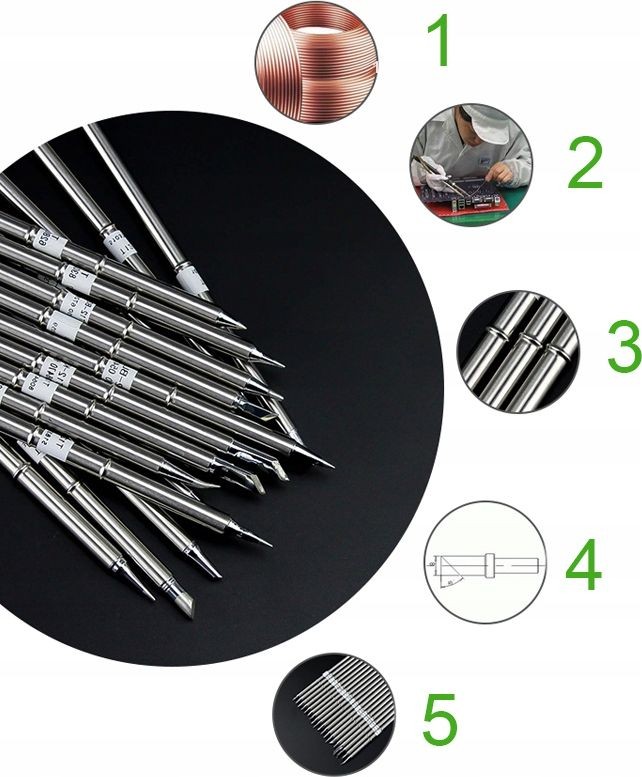 - W zestawie: kolba lutownicza, podstawka, czyścik, mata antystatyczna, topnik, kalafonia, groty T12