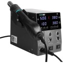 Urządzenie oferuje dokładną regulację temperatury w zakresie od 200 do 500 °C oraz możliwość dostosowania siły nawiewu. Taka kontrola zapewnia wysoką jakość lutowania oraz bezpieczeństwo podzespołów, co jest kluczowe przy pracy z delikatnymi elementami elektronicznymi.