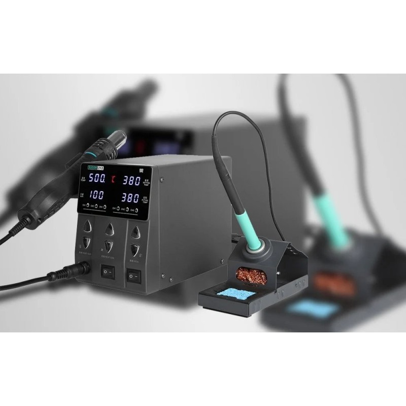 Stacja lutownicza SUGON 212 łączy funkcje lutownicy i hot-air, co pozwala zaoszczędzić cenną przestrzeń na stanowisku pracy. Dzięki temu użytkownicy mogą korzystać z pełnej funkcjonalności bez konieczności posiadania dwóch oddzielnych urządzeń.