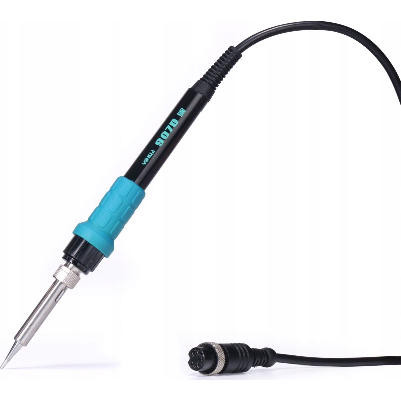 Stacja lutownicza Yihua 937D+ została wyposażona w kolbę 907D, o dużej mocy 75W (MAX 120W) zdolnej szybko nagrzać grot do zadanej temperatury jak również skompensować straty ciepła podczas lutowania. Posiada zabezpieczenie ESD SAFE chroniące elementy elektroniczne przez uszkodzeniem. Wyposażona w wyświetlacz temperatury LED, który pokazuje temperaturę w czasie rzeczywistym. Rączka stacji jest mała i wygodna w chwycie w stacji zastosowano popularny typ grotów 900M, dzięki czemu można w niej zastosować jeden z ponad 30 modeli grotów, również dostępnych na naszych innych aukcjach.