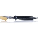 Lutownica charakteryzuje się antypoślizgowym uchwytem, co zapewnia pewny chwyt podczas użytkowania. Dzięki temu, praca z narzędziem staje się komfortowa i precyzyjna, nawet w trudno dostępnych miejscach.