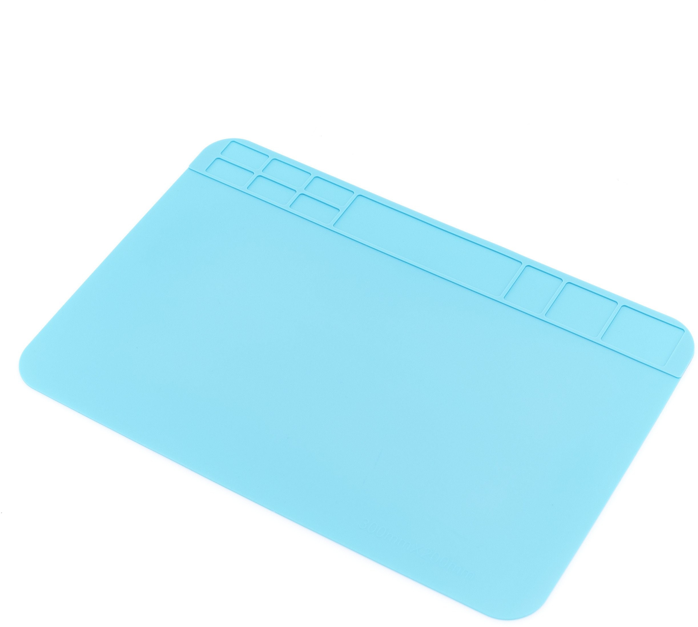 Dołączona silikonowa mata antystatyczna o wymiarach 300x200mm z organizerem zapewnia wygodne miejsce do pracy oraz chroni wrażliwe komponenty przed uszkodzeniem. Materiał maty jest odporny na wysokie temperatury, co czyni ją idealnym dodatkiem do lutownicy.