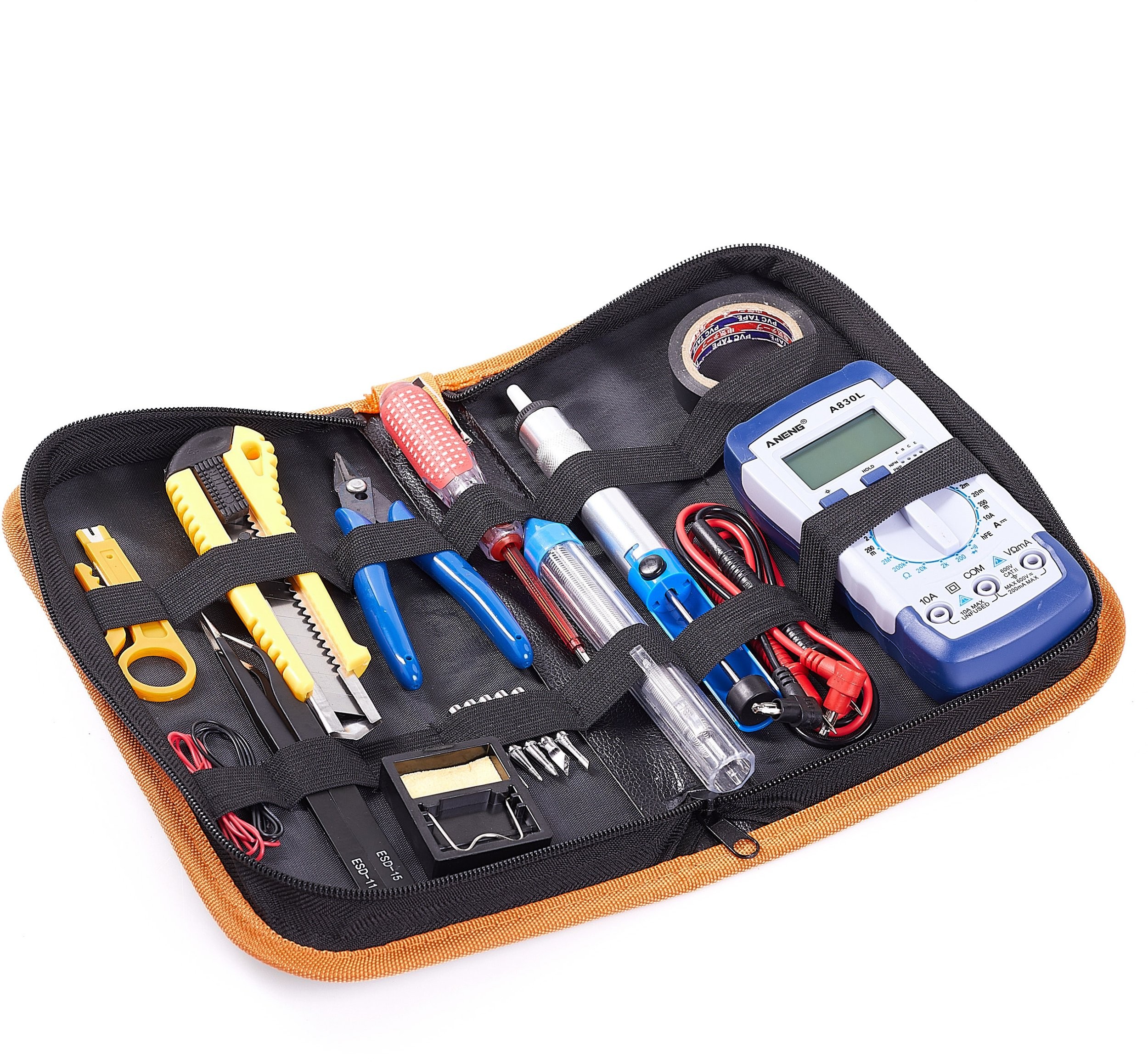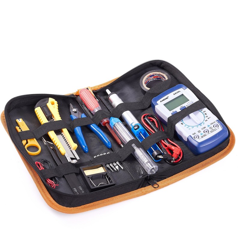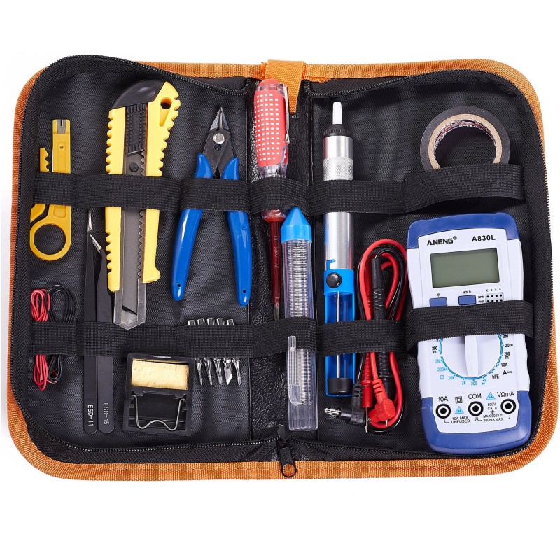 W zestawie znajduje się również cyfrowy multimetr Aneng A830L, który umożliwia dokładne pomiary elektryczne, co jest nieocenione w pracy z elektroniką. To narzędzie dostarcza dodatkowej wartości dla każdego użytkownika.