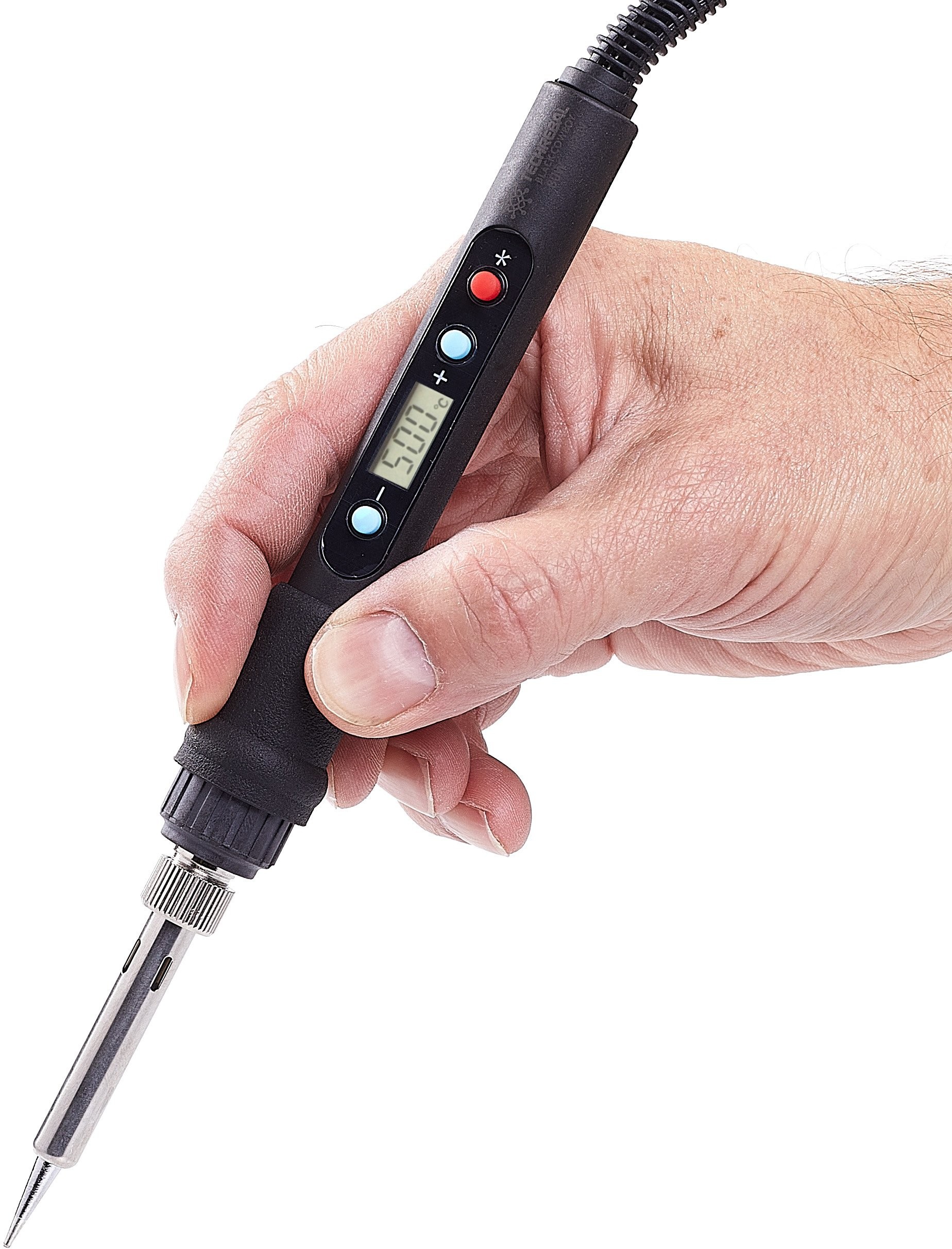 Urządzenie wyróżnia się szybkim nagrzewaniem oraz stabilnością temperatury na poziomie +/- 5 °C, co umożliwia efektywne i precyzyjne lutowanie. Wyposażona w wyświetlacz LCD, lutownica pozwala na łatwe monitorowanie ustawień temperatury.