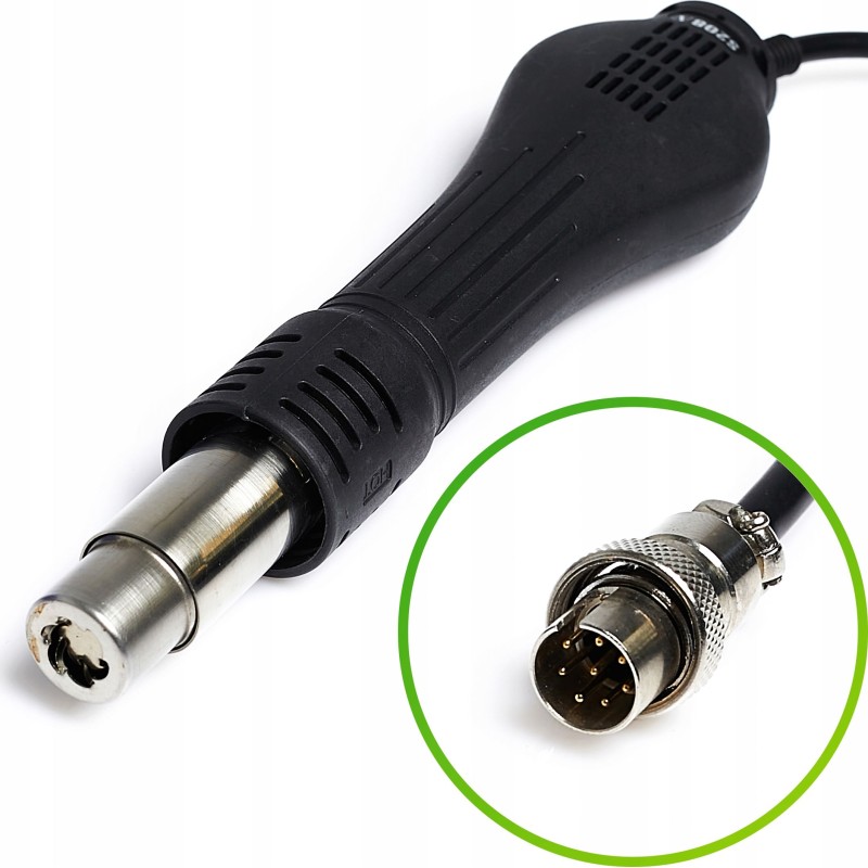 - Praca gorącego powietrza w trybie automat/ręcznym. Wybierając tryb pracy automatyczny, kiedy odłożymy kolbę gorącego powietrza na podstawkę, urządzenie automatycznie przestanie grzać i będzie schładzało do bezpiecznej temperatury. Dzięki temu zadbamy o długą, bezawaryjną prace elementu grzewczego, oszczędność energii elektrycznej i bezpieczeństwo serwisu. Wybierając tryb manualny, kiedy często musimy coś przylutować, wtedy zaoszczędzamy czas i podnosimy efektywność pracy. Zaleca się przed zakończeniem pracy, przejście w tryb automatyczny.