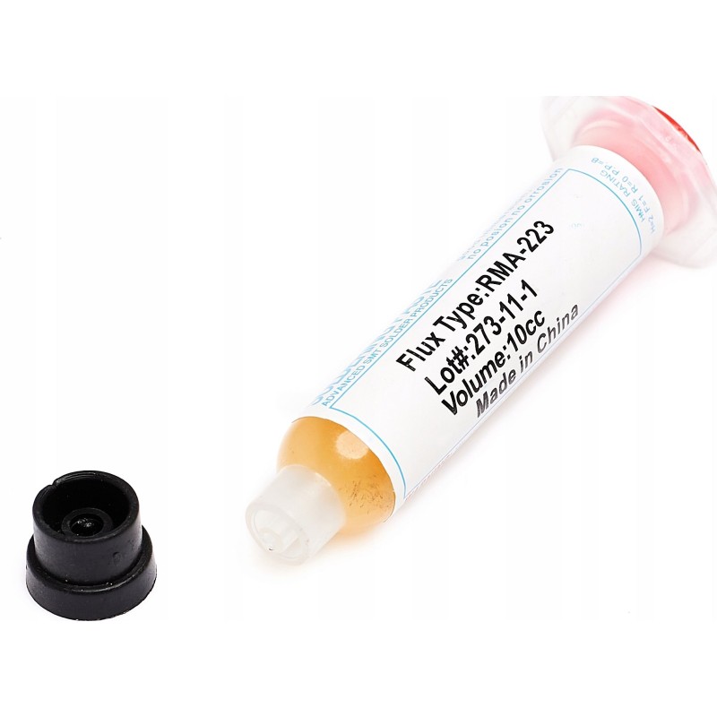 Wysokiej jakości flux lutowniczy, łatwo się rozprowadzający o wysokiej intensywności i zwilżalności powierzchni lutowniczej.Nie pogarsza właściwości elementów elektronicznych IC i PCB, nie wymaga czyszczenia po procesie lutowniczym. (jest typu NO CLEAN). Posiada konsystencję żelu co ułatwia jej aplikację. Flux używany jest również do naprawy uszkodzonych kulek oraz do wlutowywania i wylutowawania np. układów BGA w telefonach komórkowych.